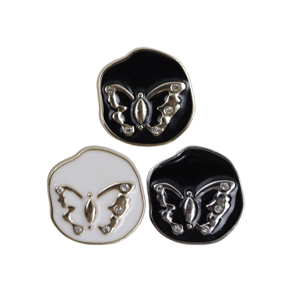 15-23mm Nepravilno oblikovani gumbi z metalnim steblom, beli, črni, vzorec metulja, 20 kosov