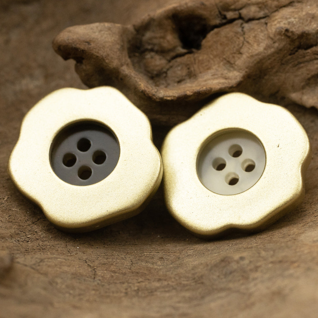 Nepravilni trikotni obrabljeni mat cvetlični gumb iz smole s štirimi luknjami, pakiranje 30 kosov