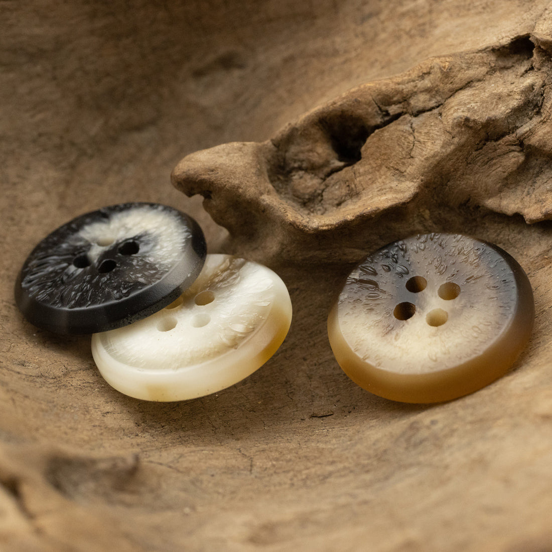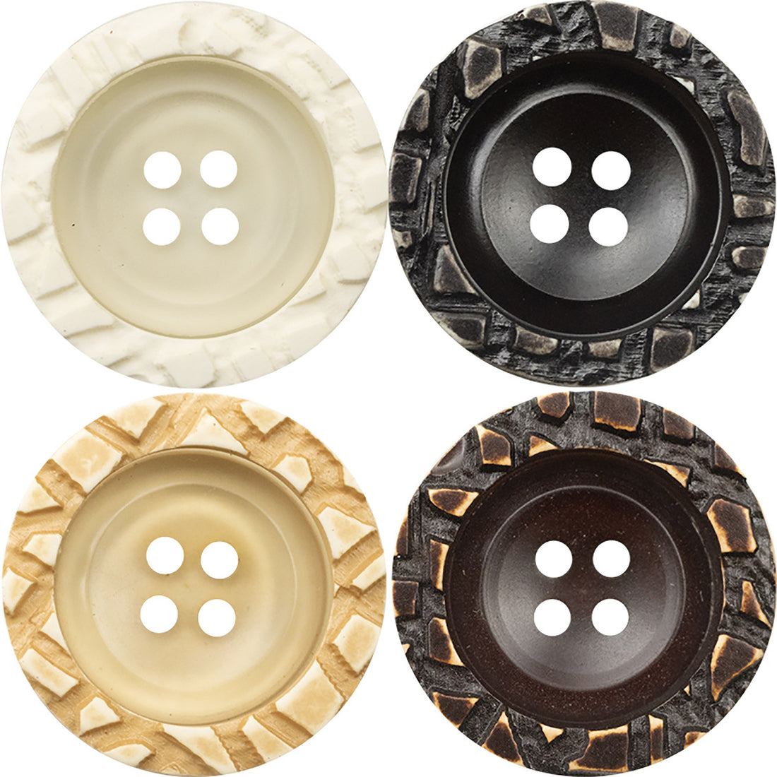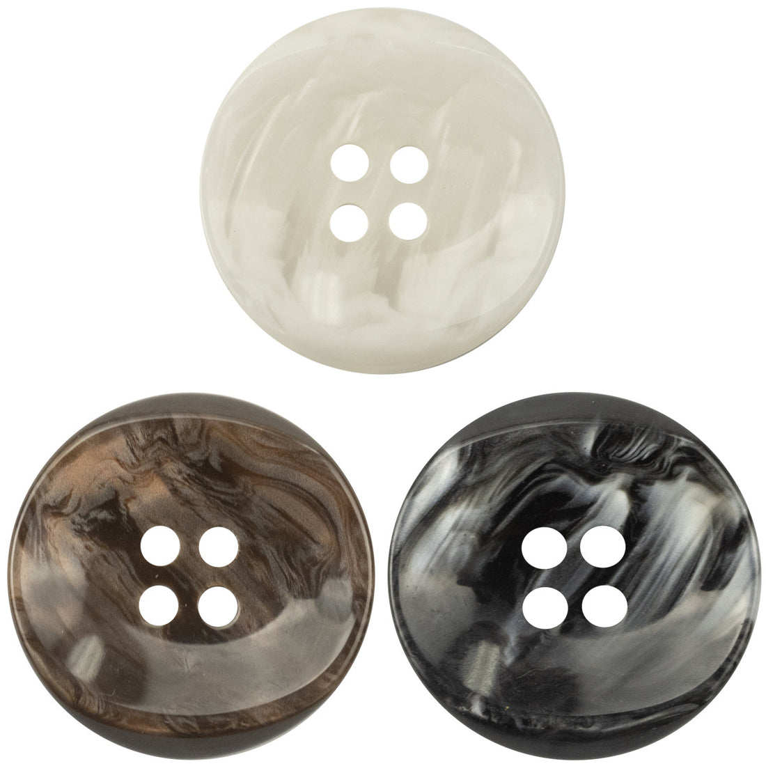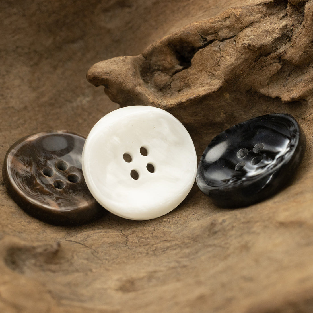 Črni, beli in rjavi gumbi iz smole z neenakomerno površino, pakiranje 30 kosov