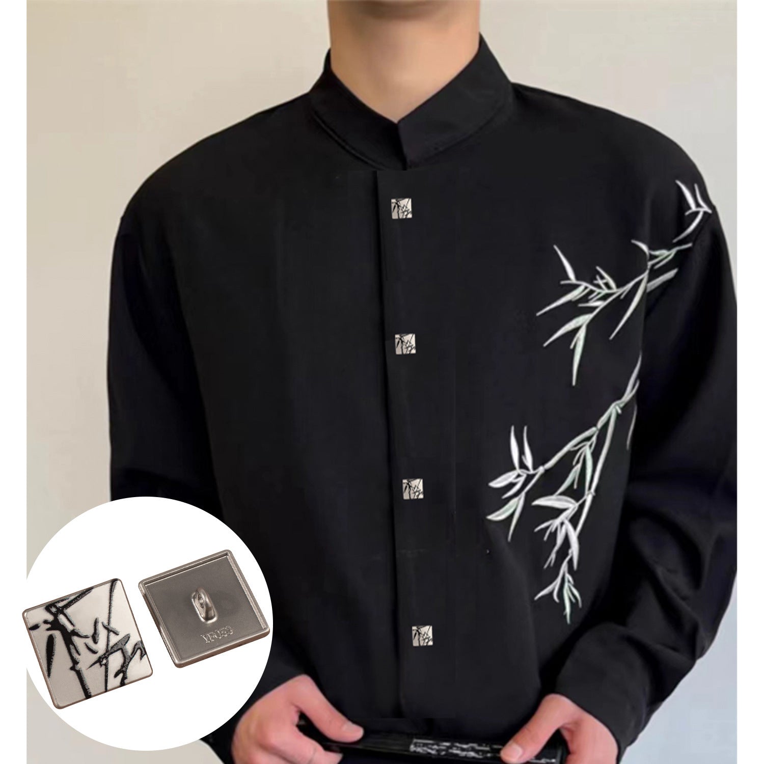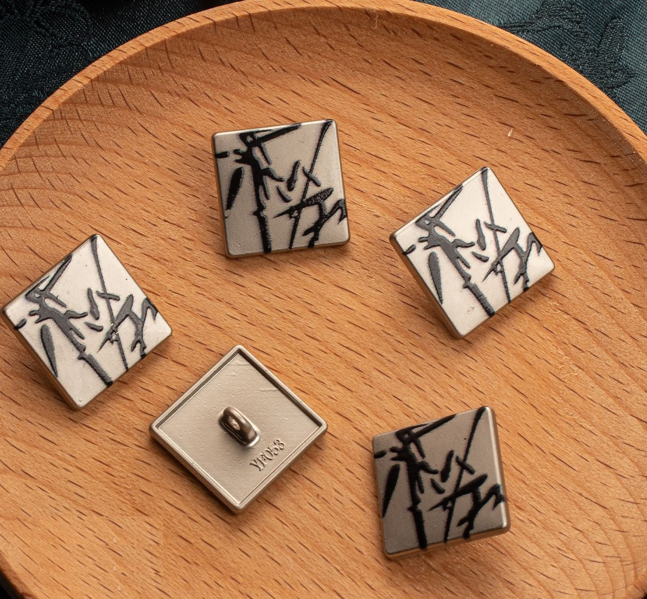 Ti 1,7 cm gumbi v kitajskem slogu so edinstvena mešanica tradicionalne umetnosti in sodobne funkcionalnosti. Kvadratna oblika je klasičen dizajn, medtem ko vzorec bambusa z črnilom, vgraviran na površino iz cinkove zlitine, doda pridih elegance in kulturne globine. Bambus, simbol odpornosti in čistosti v kitajski kulturi, je čudovito upodobljen z drobnimi detajli, kot da bi bil del tradicionalne kitajske črnilne slike. Gumbi imajo zanko ali "nogo", kar jih naredi izjemno priročne za prišivanje na različne tkanine. Ne glede na to, ali gre za tradicionalno kitajsko oblačilo, kot je Hanfu, ali za dodajanje orientalskega poudarka sodobnim oblačilom, kot so srajca ali jakna, bodo ti gumbi izboljšali celoten videz. Njihova visokokakovostna konstrukcija iz cinkove zlitine zagotavlja vzdržljivost, moderen dizajn pa jih naredi izstopajočo izbiro za tiste, ki želijo subtilno in prefinjeno vključiti kitajske elemente v svojo modo.