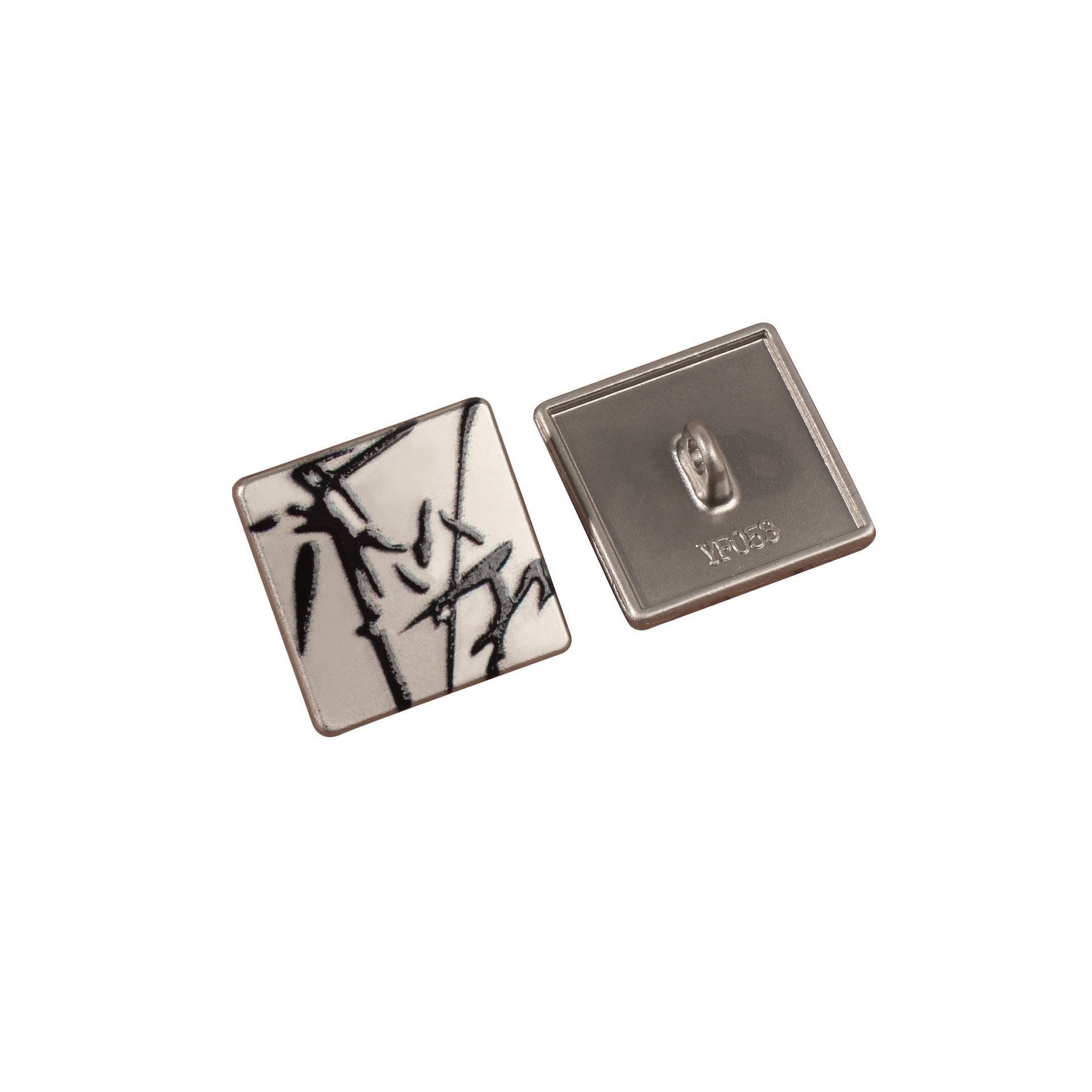 1,7 cm kitajski kvadratni gumbi iz cinkove zlitine z vzorcem bambusa z črnilom in zanko, 20 kosov