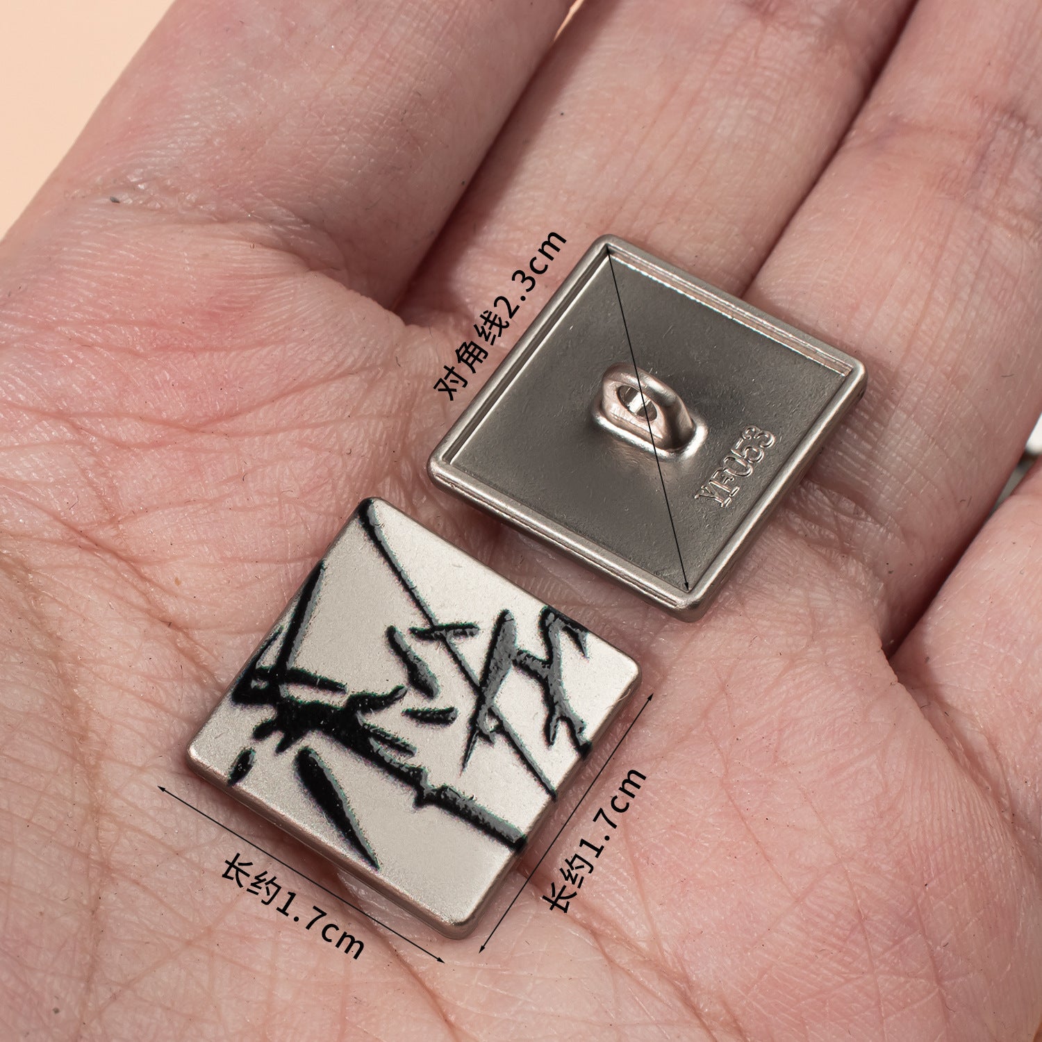 1.7cm kitajsko črnilo bambus kvadratni gumbi iz cinkove zlitine 20 kosov