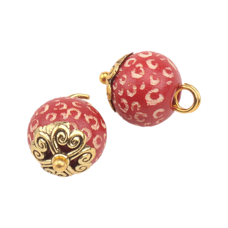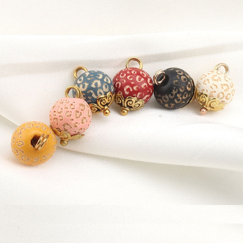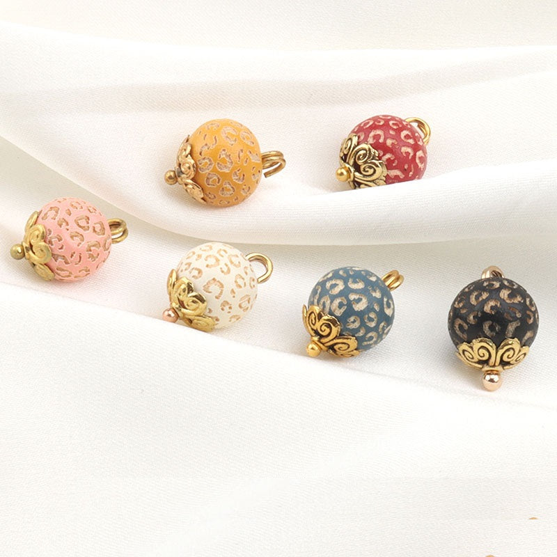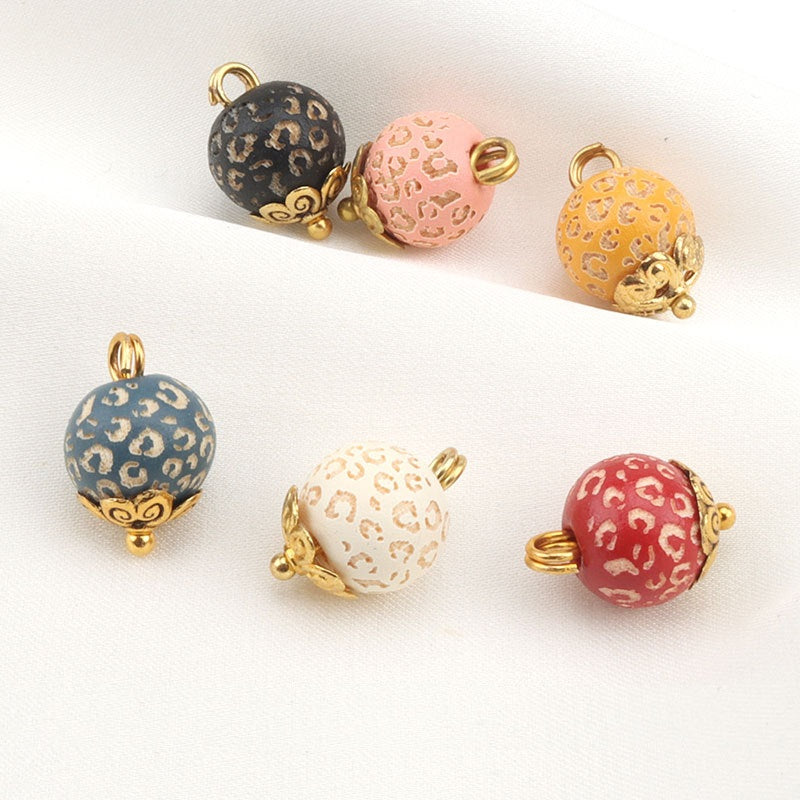 10 mm kovinski cvetlični pokrovček z barvnim pečenim zaključkom in gumbi z lasersko leseno kroglico, 30 kosov (6 različnih barv)