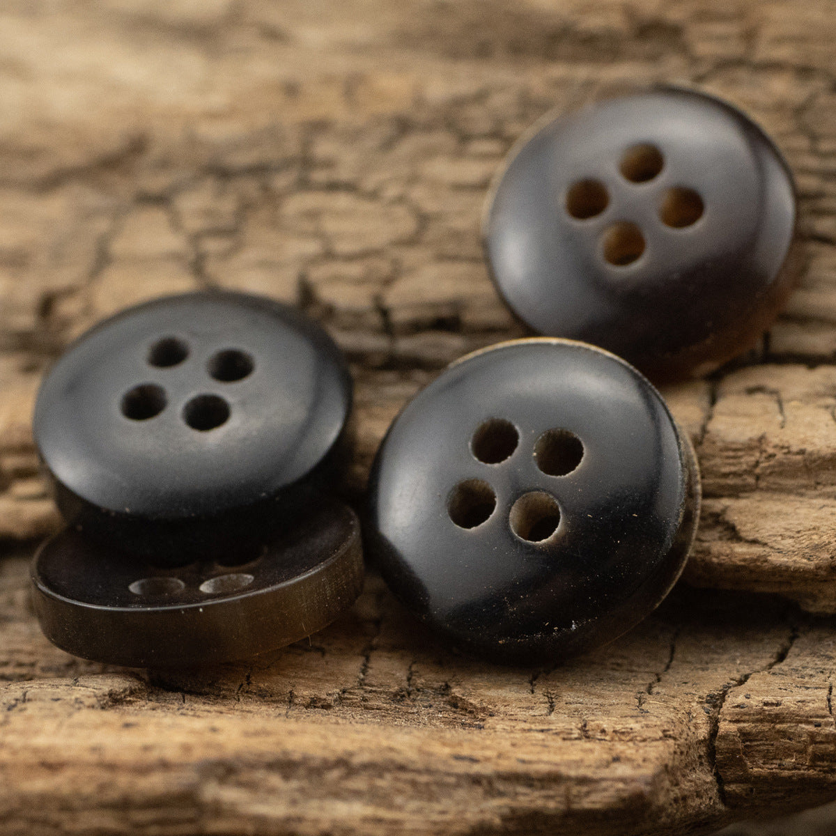 11.5mm Skledasto Oblikovane 4 Luknje Ožgane Črne Rogove Gumbke za Srajce 10 kosov