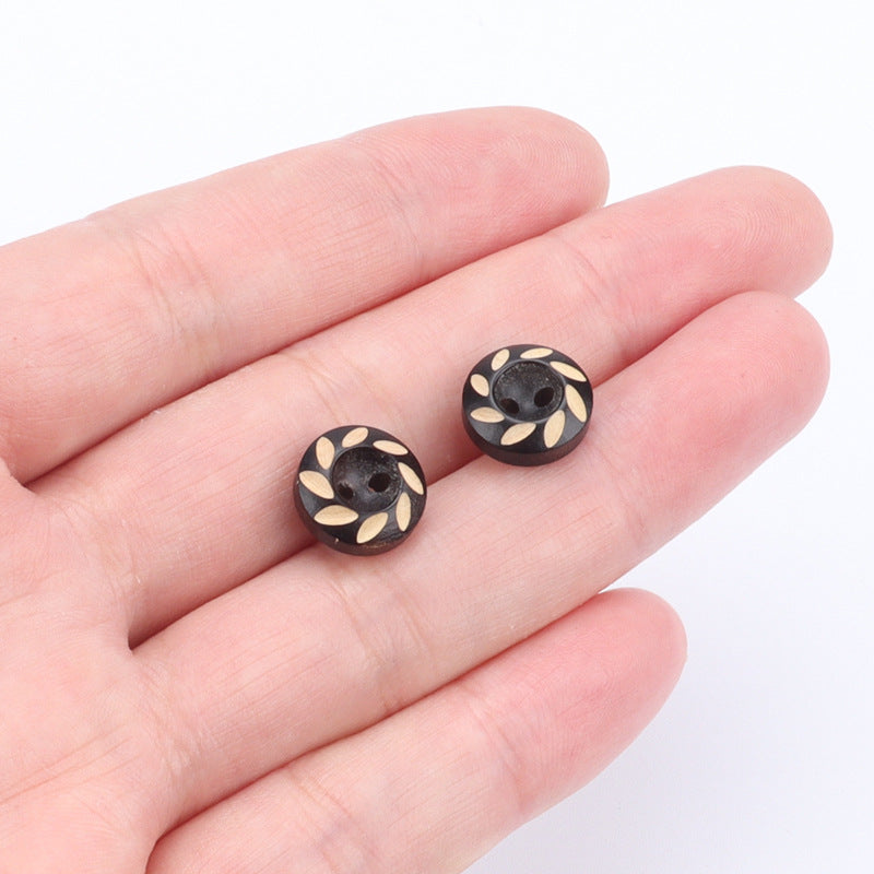 11.5mm okrogli 2 luknji temno rjavi pobarvani lasersko rezljani naravni leseni gumbi 40 kosov