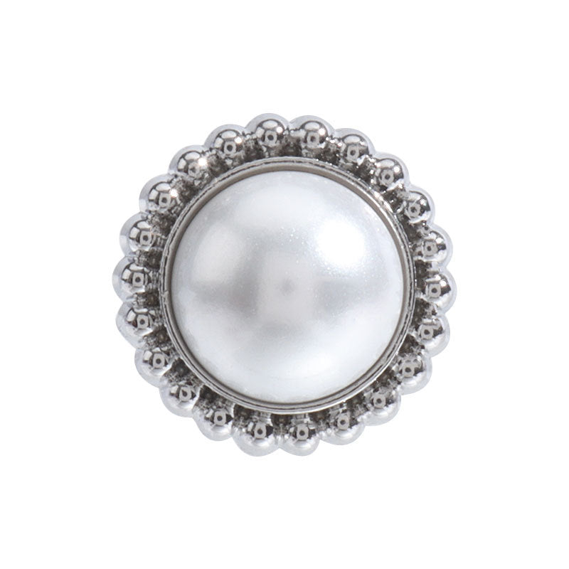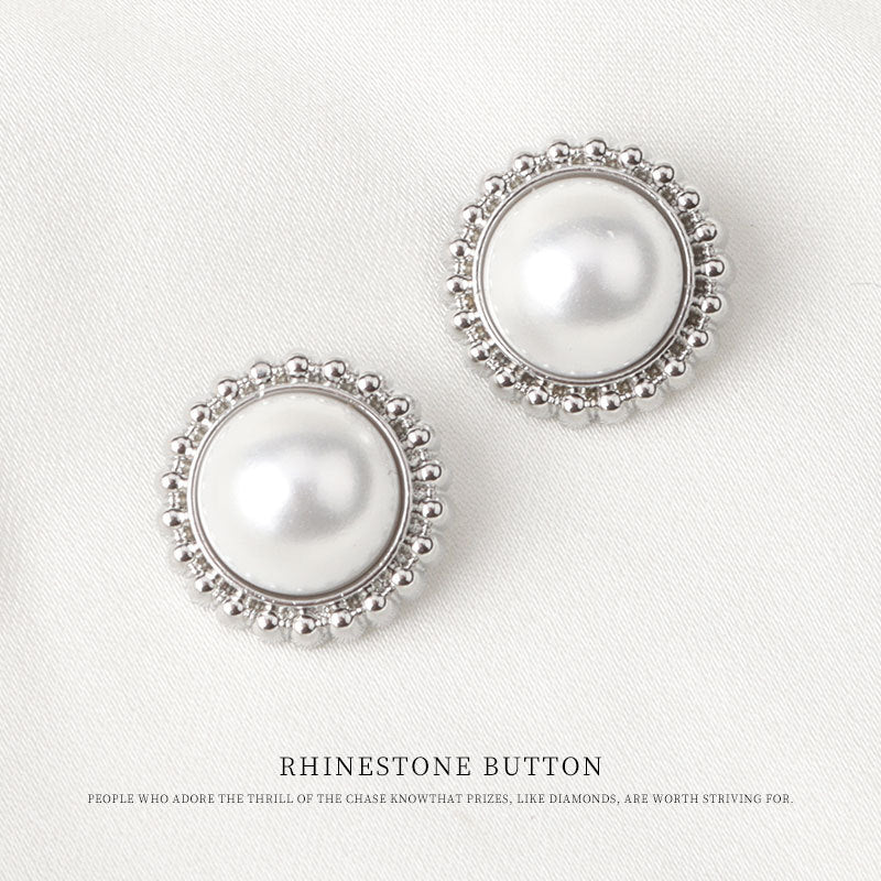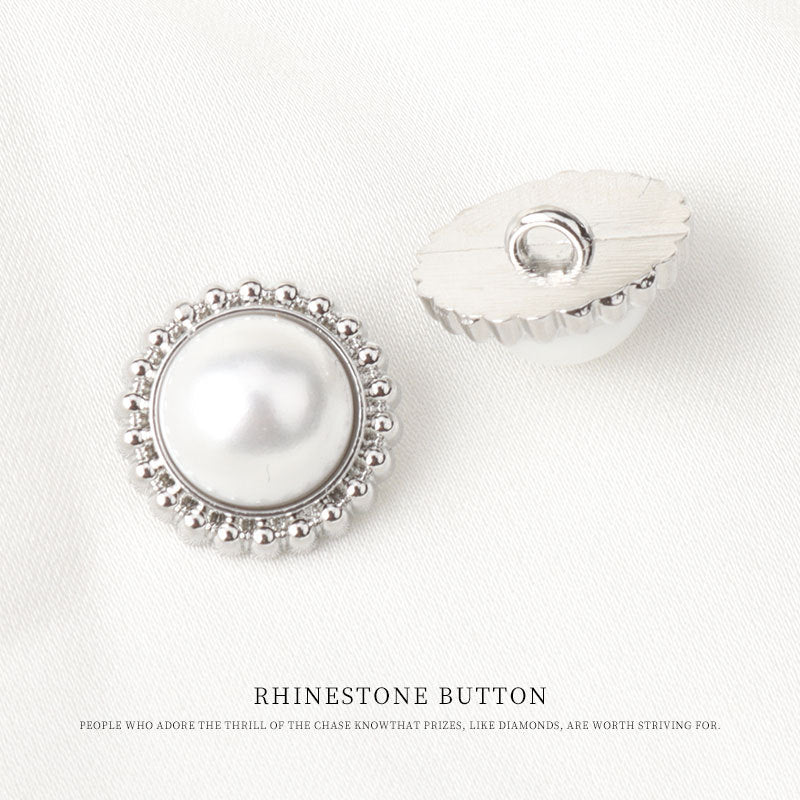12mm okrogli srebrni kovinski gumb z biserom in zanko - dekorativni gumb za srajce in jopice, 12 kosov