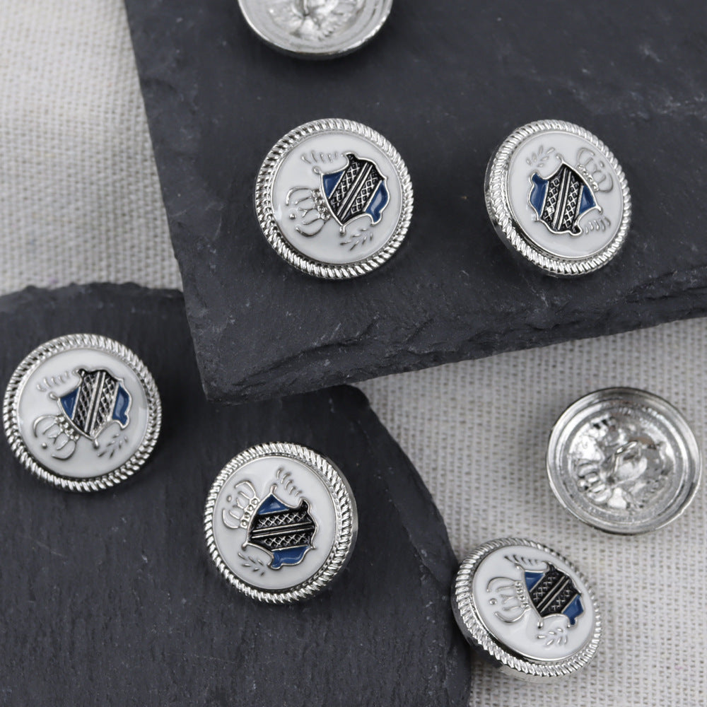 Ti 15 - 25 mm kovinski gumbi z zankami izražajo značilen britanski čar. Izdelani so iz visokokakovostne zlitine, zaradi česar so idealni za šolske uniforme in suknjiče.