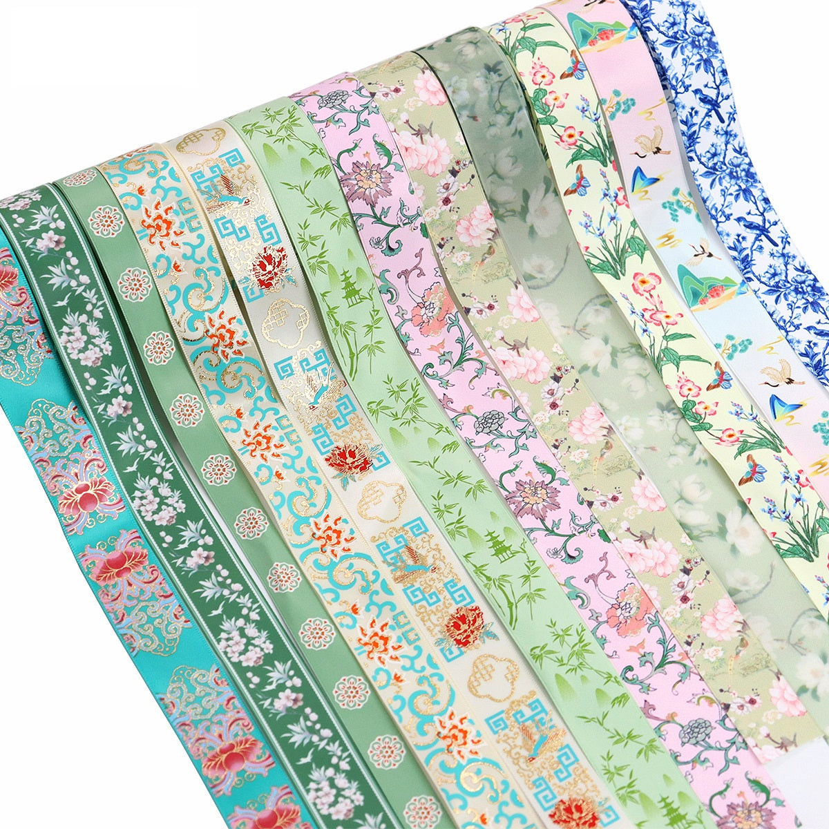 16mm/25mm Nov kitajski slog luksuzna cvetlična rebrasta trak 12 paketov