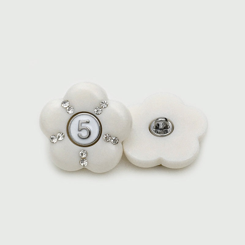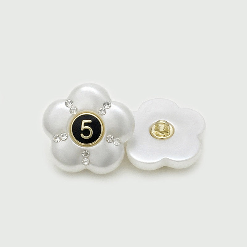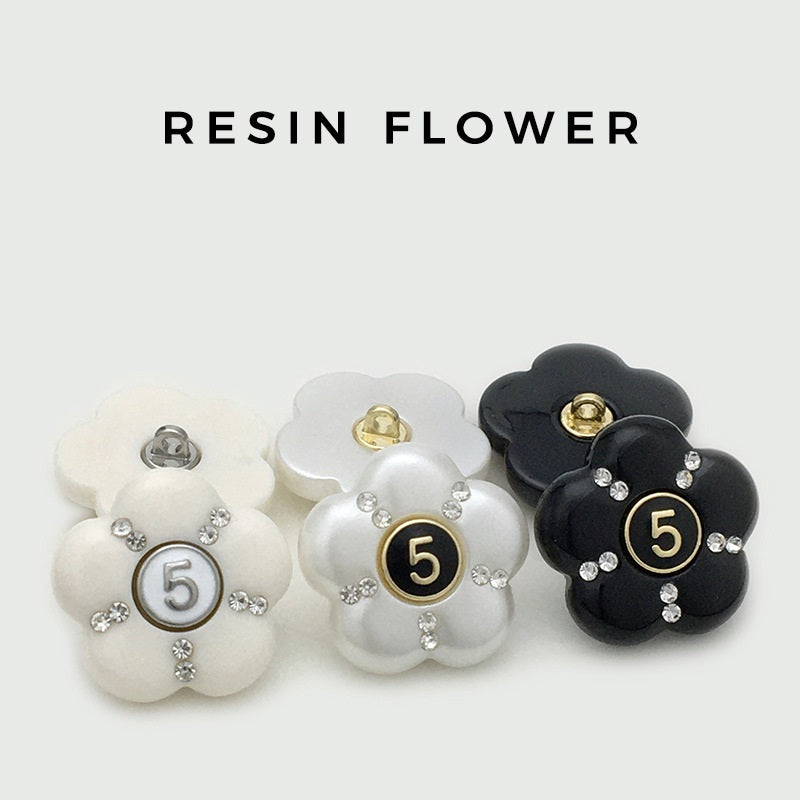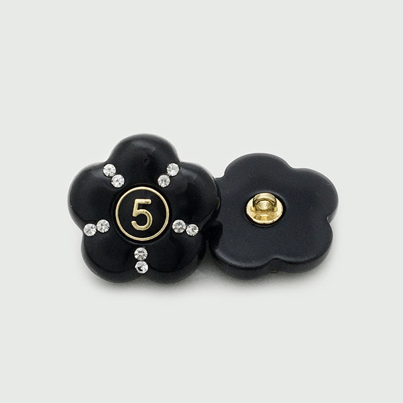 17,5/22,5 mm Izjemni črno-beli smolni gumbi s številko 5 okrašeno z diamanti in cvetličnim vzorcem za plašče, 12 kosov