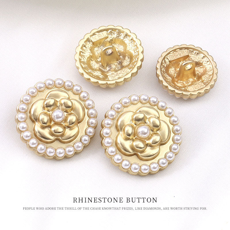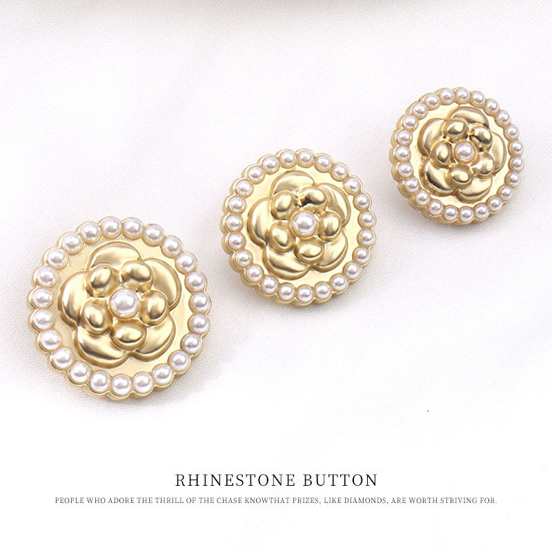 17.5-23mm okrogel zlat kovinski gumb s cvetličnim biserom 12 kosov
