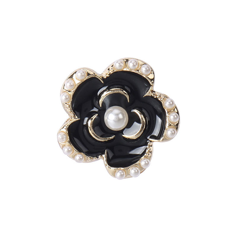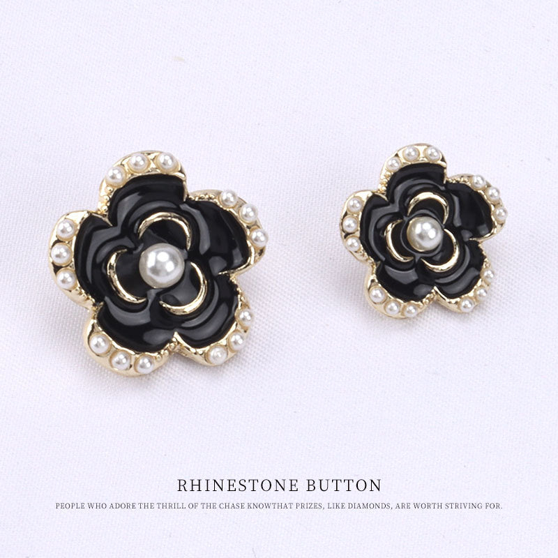 18-23mm črni gumb z zlatim robom in cvetličnim biserom za ženske plašče in puloverje, 12 kosov