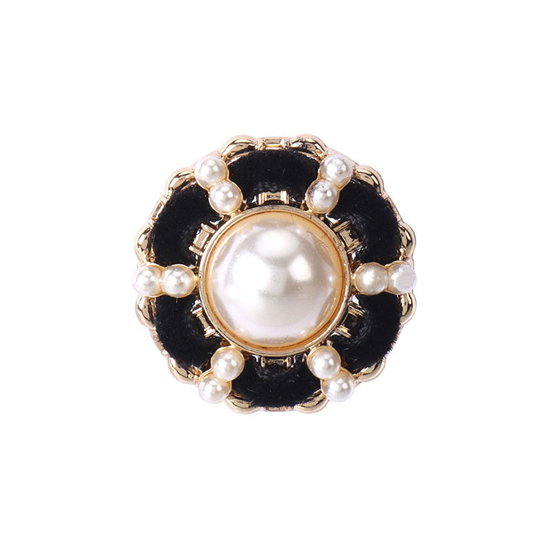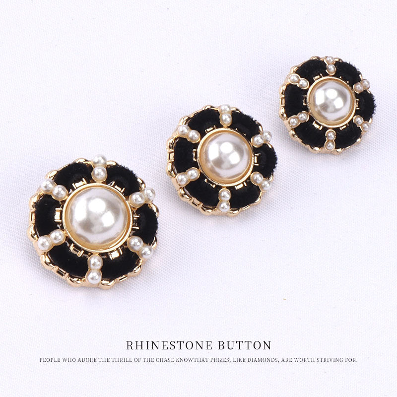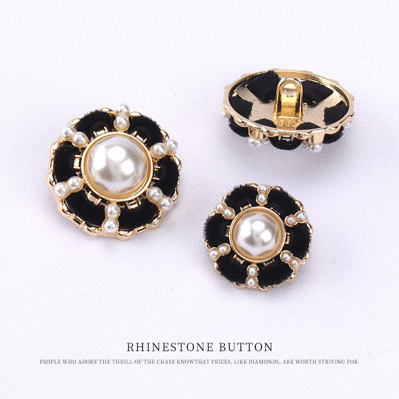 18-23mm gumb s črnim žametnim trakom, z zlatim robom in biseri ter z zanko - gumbi za ženske modne plašče in vetrovke, 12 kosov