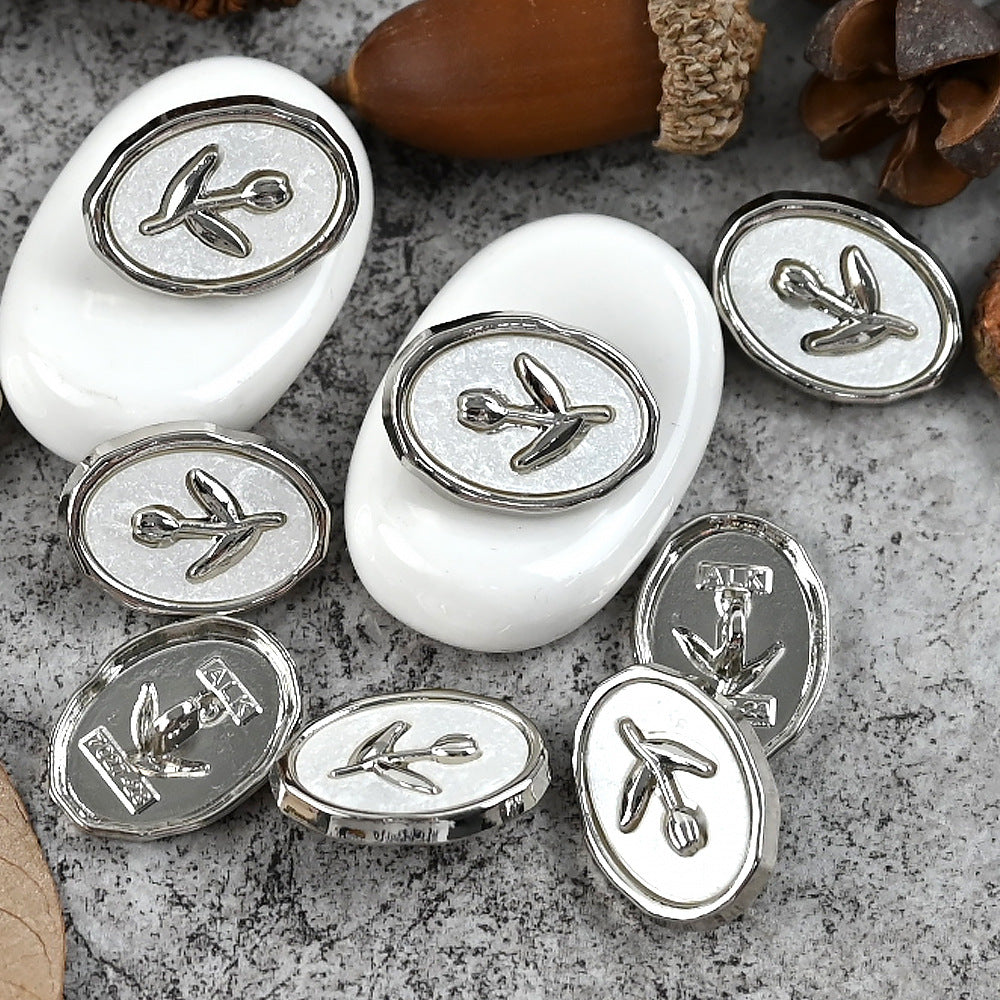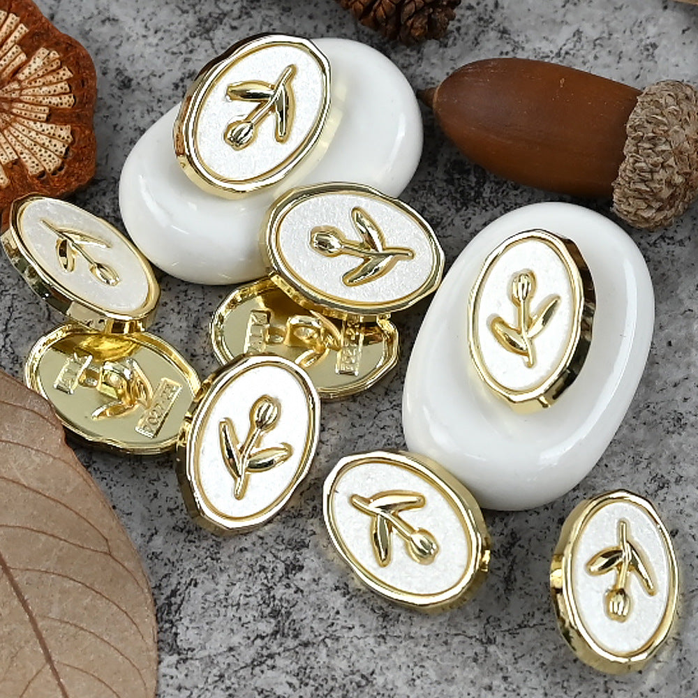 Ti kovinski gumbi velikosti 18/23 mm so oblikovani v čudovito ovalno obliko tulipana in so na voljo v zlati in srebrni barvi. Imajo zatiče, zaradi česar so popolni za okrasitev pulover jopic.