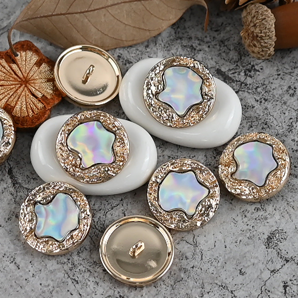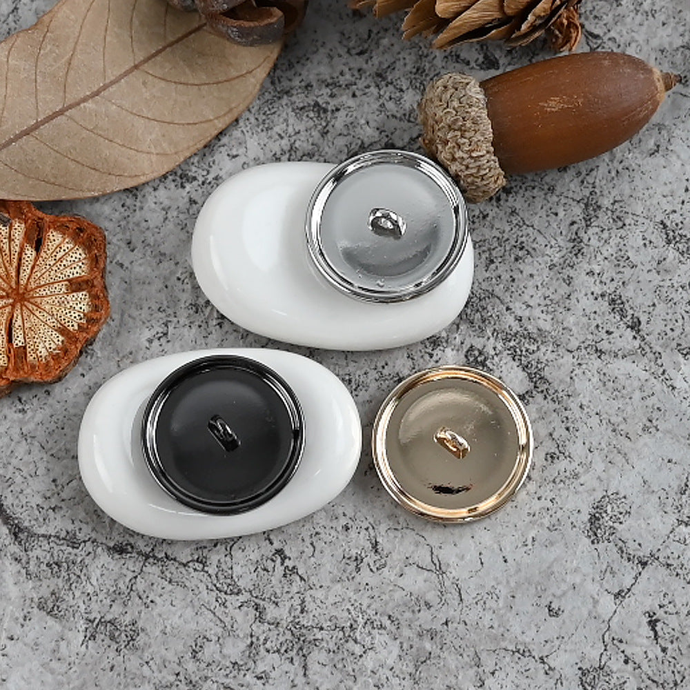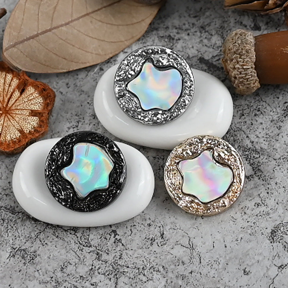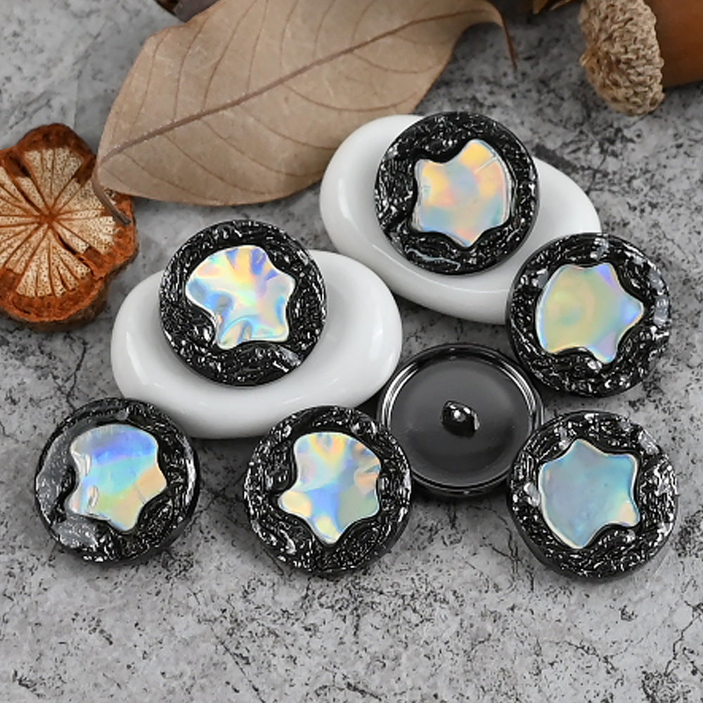 Ti gumbi, velikosti 18 - 25 mm, so popolna mešanica kovine in smole v francoskem slogu. Ponašajo se z edinstvenim bleščečim učinkom, ki pritegne pogled in doda pridih glamurja.