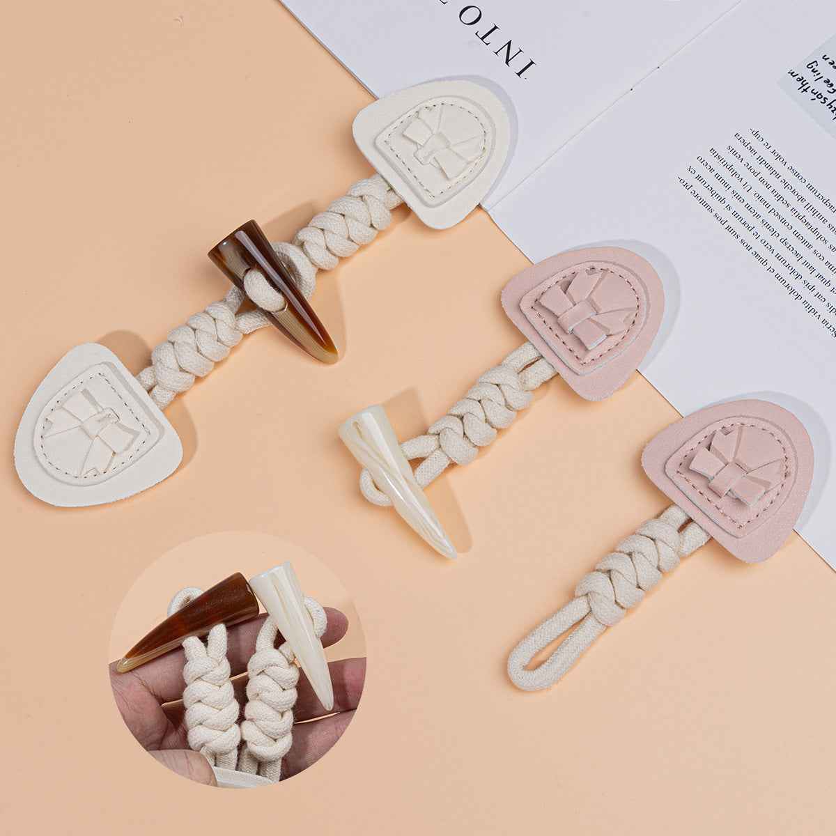 18,5 cm roza in bež smolnate "bivolji rog" usnjene sponke za otroške plašče in trench plašče, 4 kosi