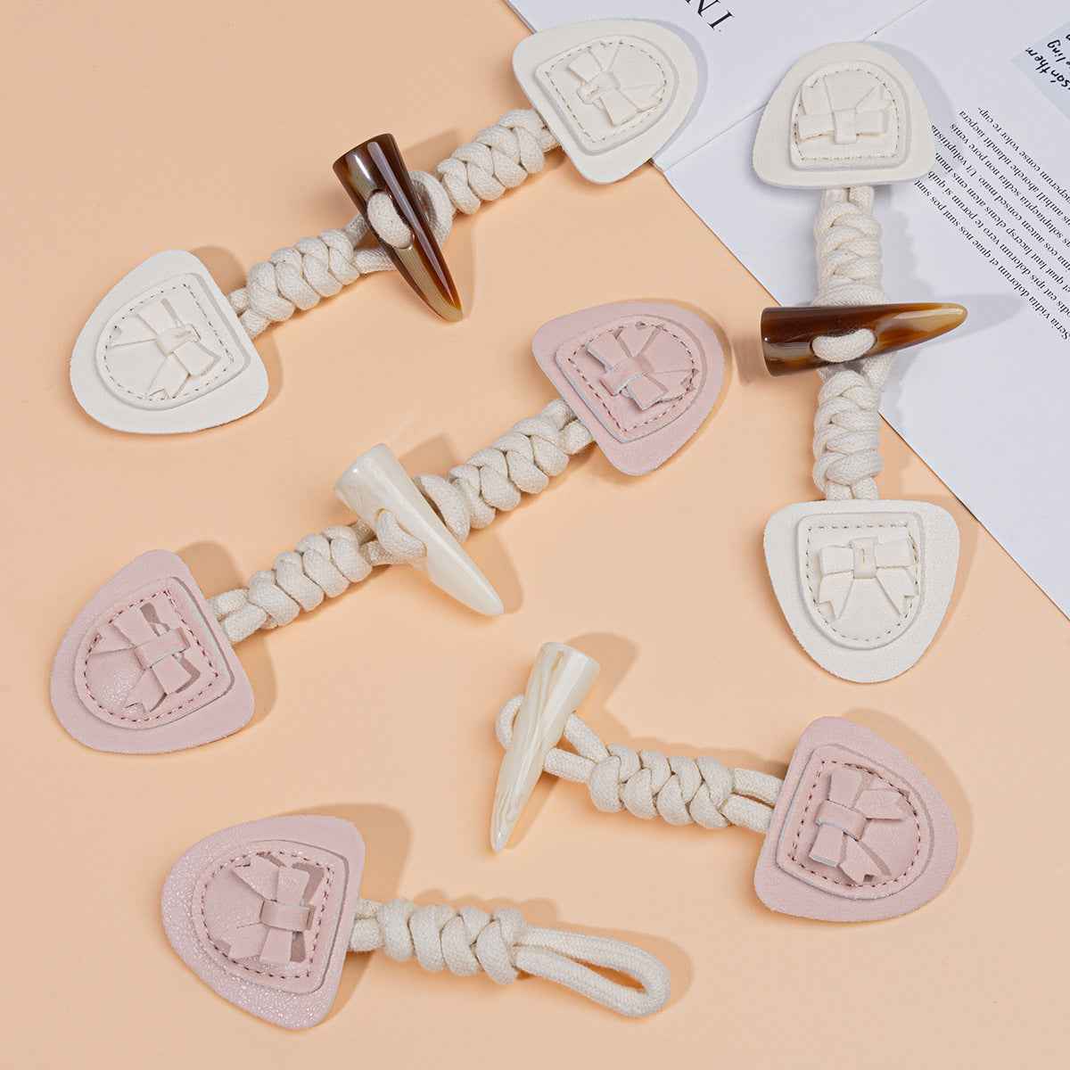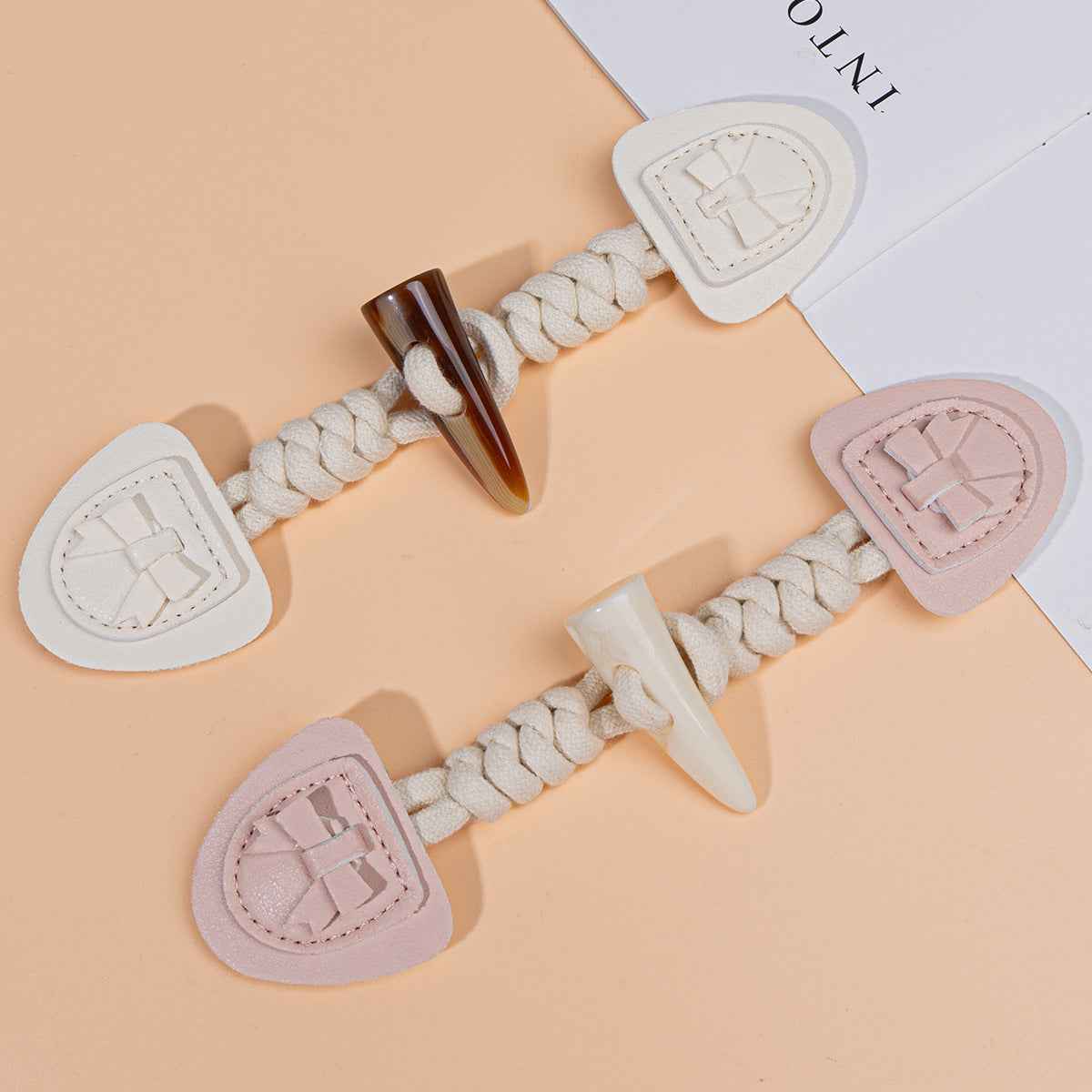 18.5cm roza bež smolnati usnjeni zaponki v obliki bivoljih rogov za otroške plašče 4 kosi