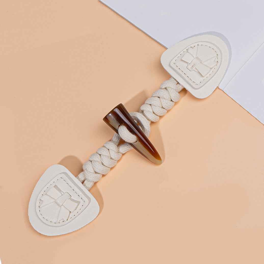 Te prikupne sponke velikosti 18,5 cm so posebej zasnovane za otroška zunanja oblačila. Edinstvena oblika bivoljega roga, izdelana iz visokokakovostne smole v prijetnih roza in bež odtenkih, doda prikupen in moderen pridih. V kombinaciji z vzdržljivo usnjeno obdelavo niso le stilske, ampak tudi praktične. Smolni material je lahek in varen za otroke, medtem ko usnje zagotavlja dolgo življenjsko dobo. Te sponke je enostavno pritrdiliti in odstraniti, kar otrokom olajša oblačenje. Ne glede na to, ali gre za topel zimski plašč ali moderen trench plašč, bodo te sponke v stilu "bivoljega roga" izboljšale celoten videz in naredile otroško obleko izstopajočo. So popolna kombinacija mode in funkcionalnosti, primerne za vsako priložnost in zagotovo bodo na obraz vašega otroka narisale nasmeh.