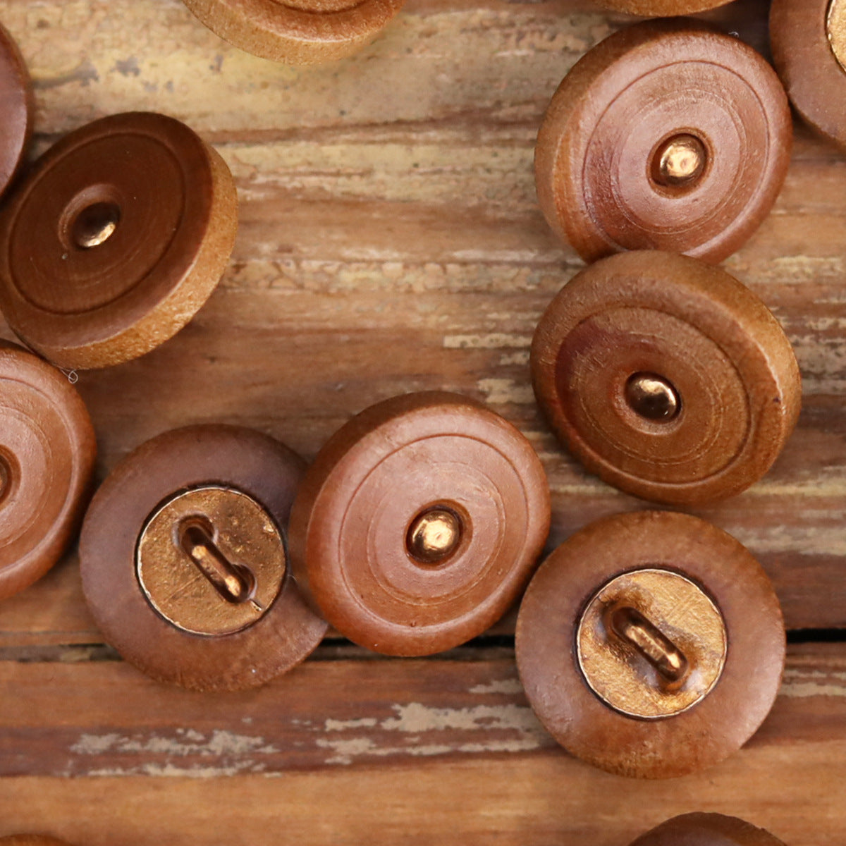 18L rjav okrogel lesen ročno šivan gumb z metalnimi nogicami 20 kosov