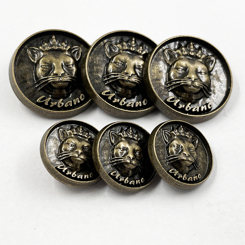 18mm/25mm bronasti gumbi iz trdnega kovinskega materiala z motivom krone in mačje glave za plašče, srajce in dekorativno uporabo, 50 kosov