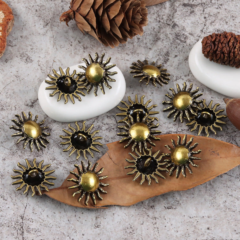 Ti 19/24mm kovinski gumbi so oblikovani v očarljiv vzorec vintage zlate sončnice. Popolni so za dodajanje pridih elegance in edinstvenosti vetrovkam, plaščem in jopičem iz jagnječje volne.