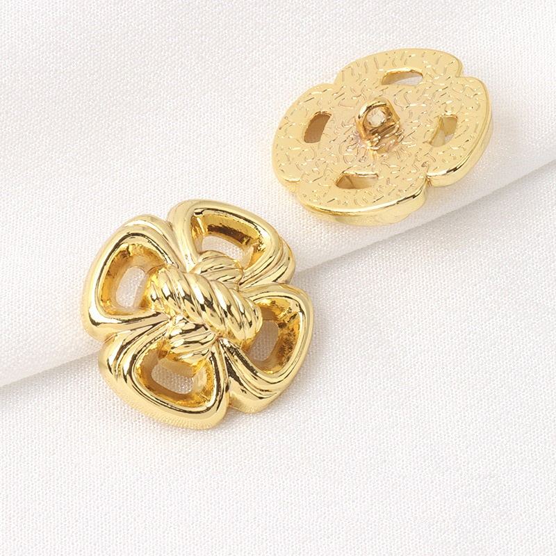 20/25mm zlate votle gumbe v obliki štiriperesne deteljice z odebeljenim kovinskim zadkom, 10 kosov