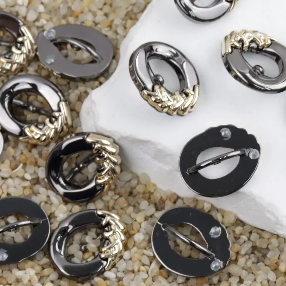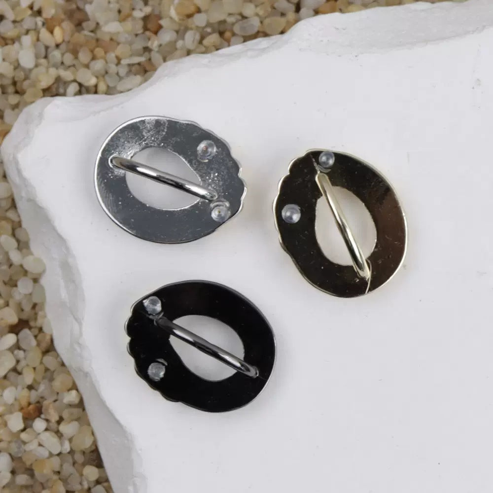 Ti 21mm ovalni kovinski gumbi z zankami so na voljo v treh prefinjenih barvah: mat zlata, starinsko srebrna in pištolno črna. Namenjeni so posebej za okrasitev volnenih plaščev.