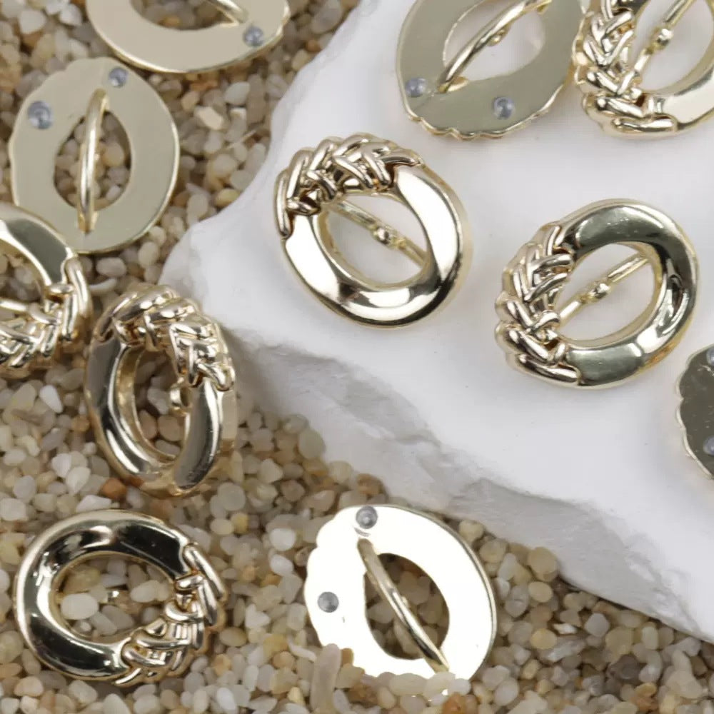 Mat zlata ponuja mehko, razkošno sijaj; starinsko srebro prinaša vintage čar; pištolno črna pa daje sodoben, drzno občutek. Ovalna oblika je elegantna in laskava za celoten dizajn plašča. Kovinska konstrukcija zagotavlja vzdržljivost in kakovosten videz. Enostavni so za prišiti in nudijo varno zapenjanje. Ti gumbi lahko preoblikujejo preprost volnen plašč v modni in izrazit kos. Ne glede na to, ali gre za formalni plašč ali priložnostni pea coat, bodo izboljšali estetiko in nosilca izpostavili z dotikom prefinjenosti in elegance.