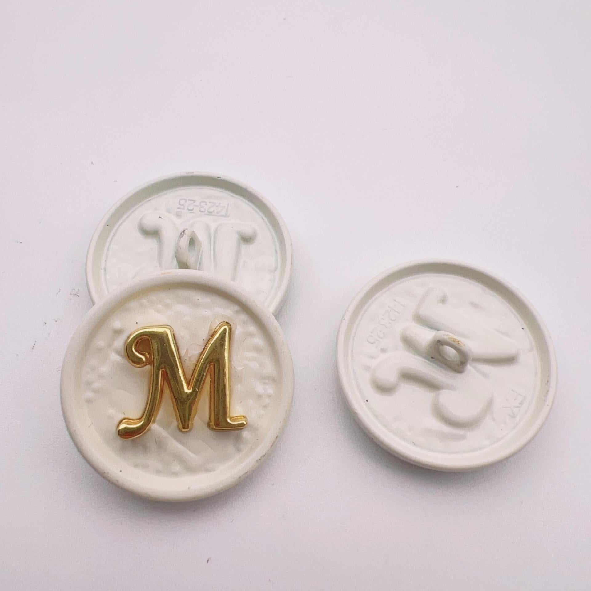 25mm črka M okrogli kovinski dekorativni gumbi, pakiranje 48 kosov