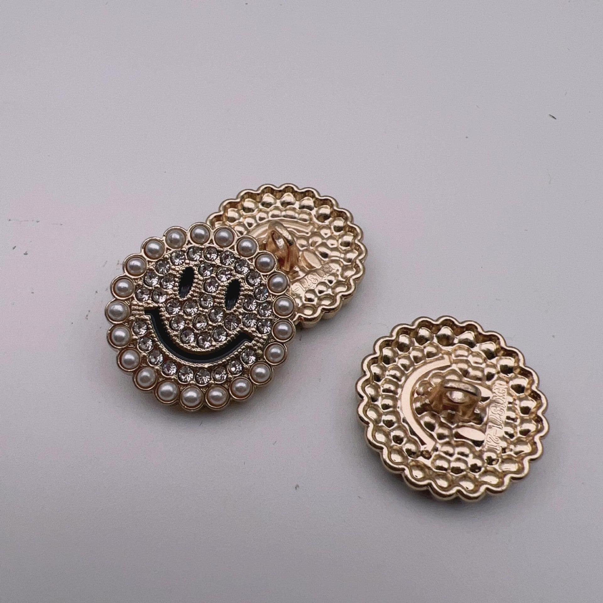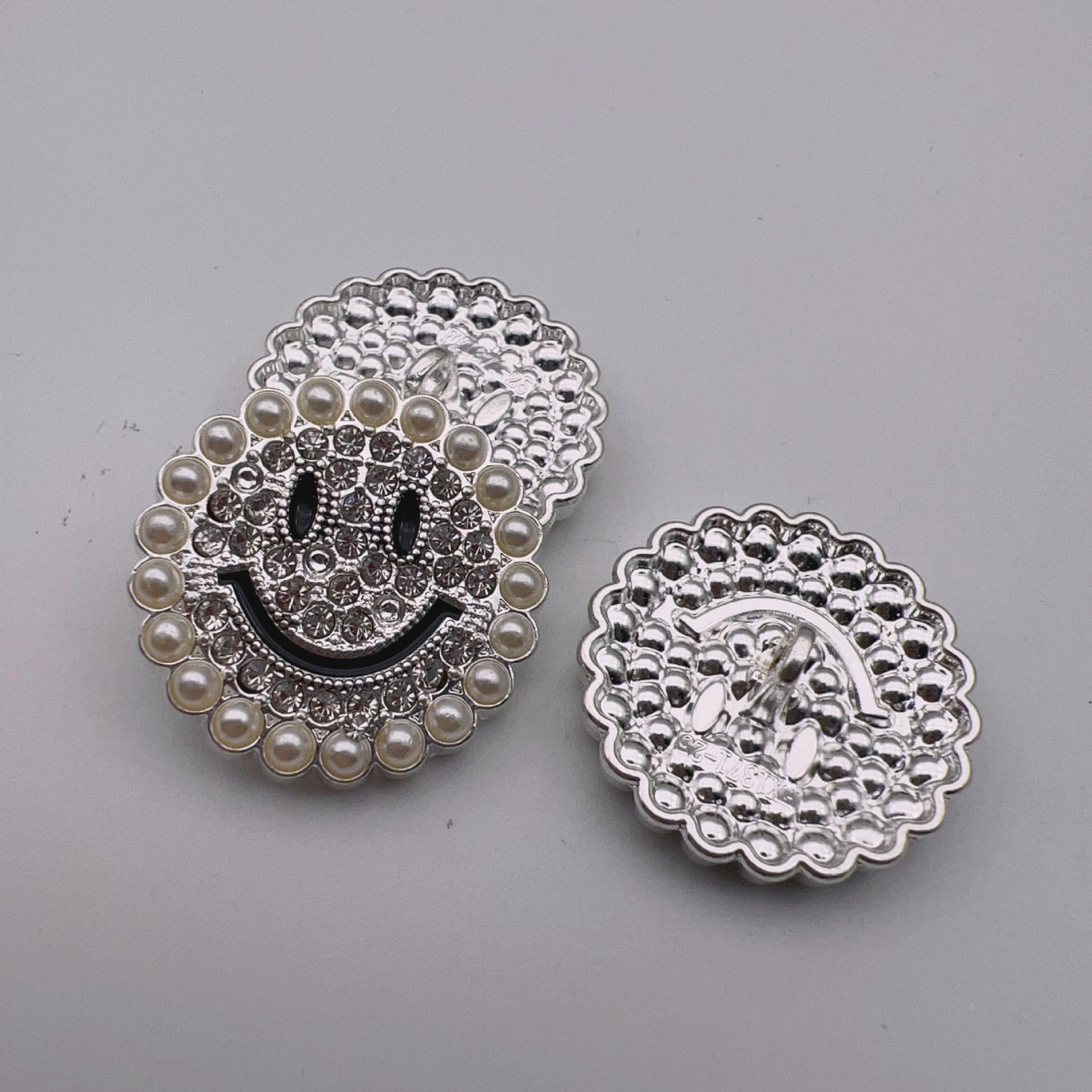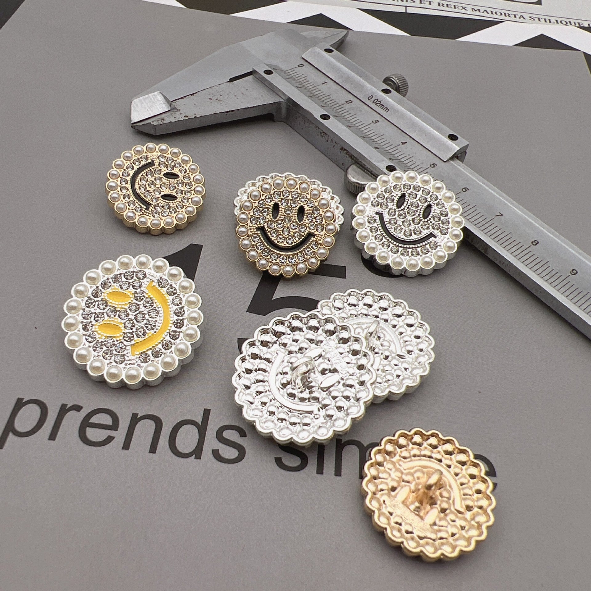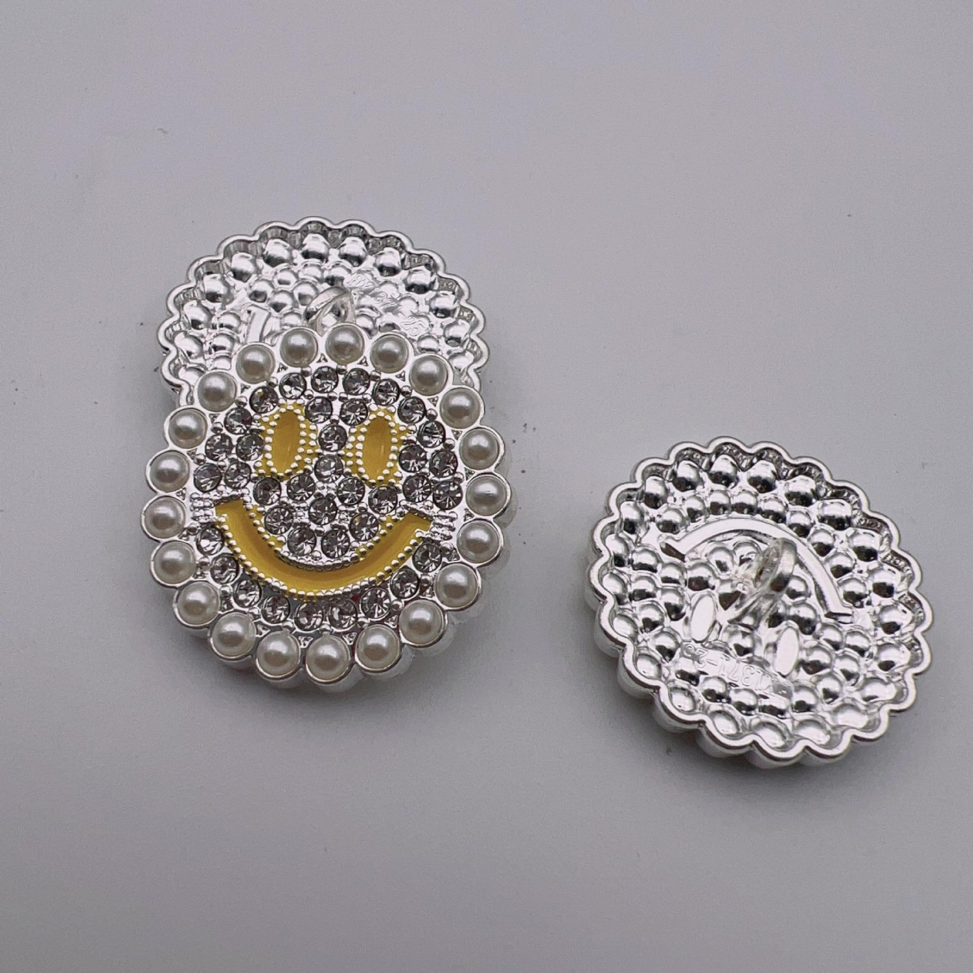 18/21/25 mm gumbi z nasmehom, obrobljeni s perlami, kovinski zatič, 50 kosov (3 barve)