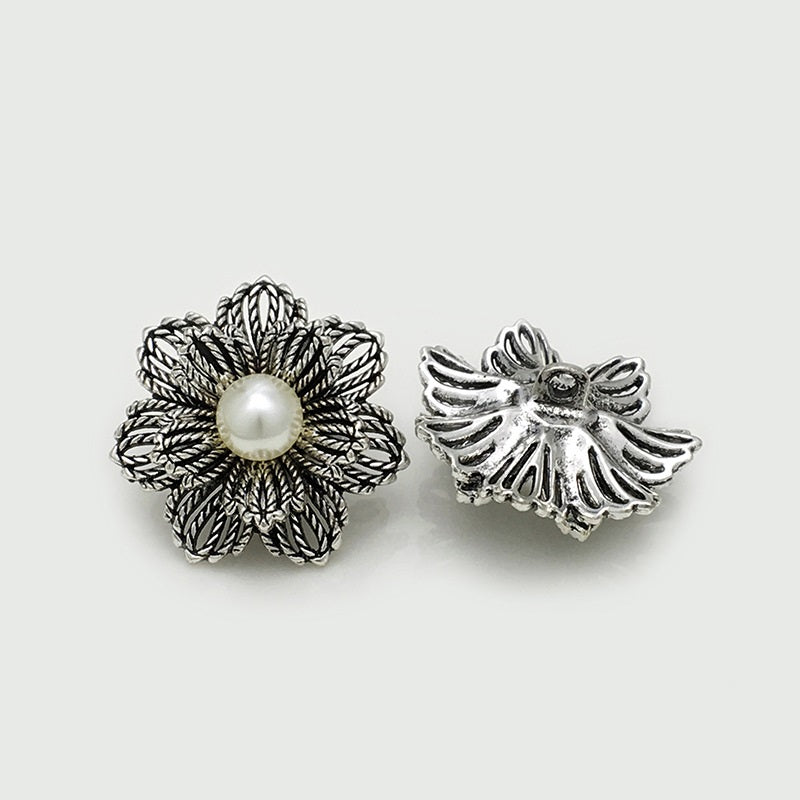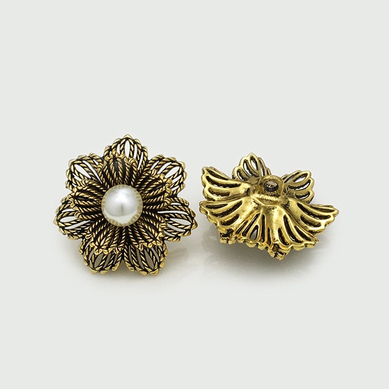 25mm vintage zlati in srebrni kovinski gumbi z biseri v obliki cvetov, 20 kosov