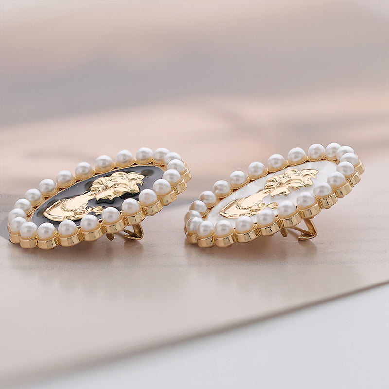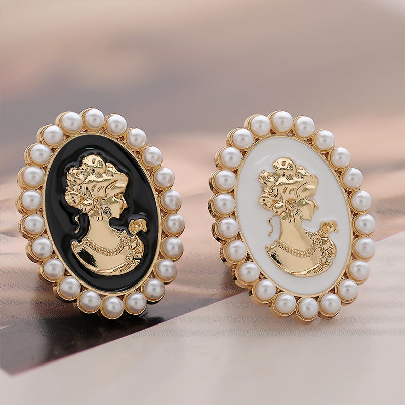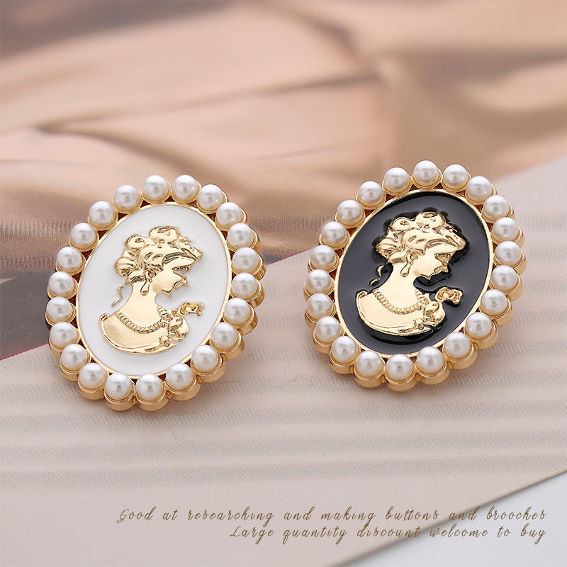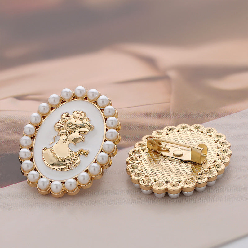31mm retro palačna biserna kovinska broška z lepotnim portretom 3 kosa