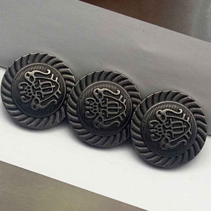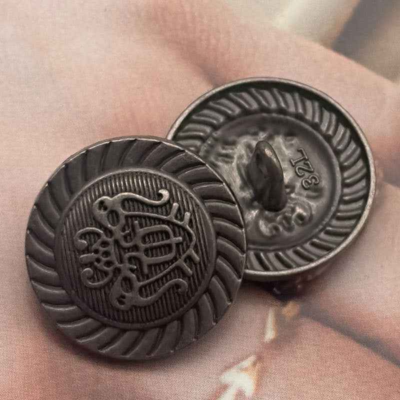 Dopolnite svoj brezčasen dizajn trenč plašča s temi elegantnimi 32L britanskega stila vintage kovinskimi gumbi. Z merami 20 mm v premeru ti gumbi vsebujejo avtentične zaključke iz starinskega medenine/ srebra, navdihnjene z britanskim krojaštvom, popolni za ustvarjanje prefinjene zunanje obleke s zgodovinskim šarmom.