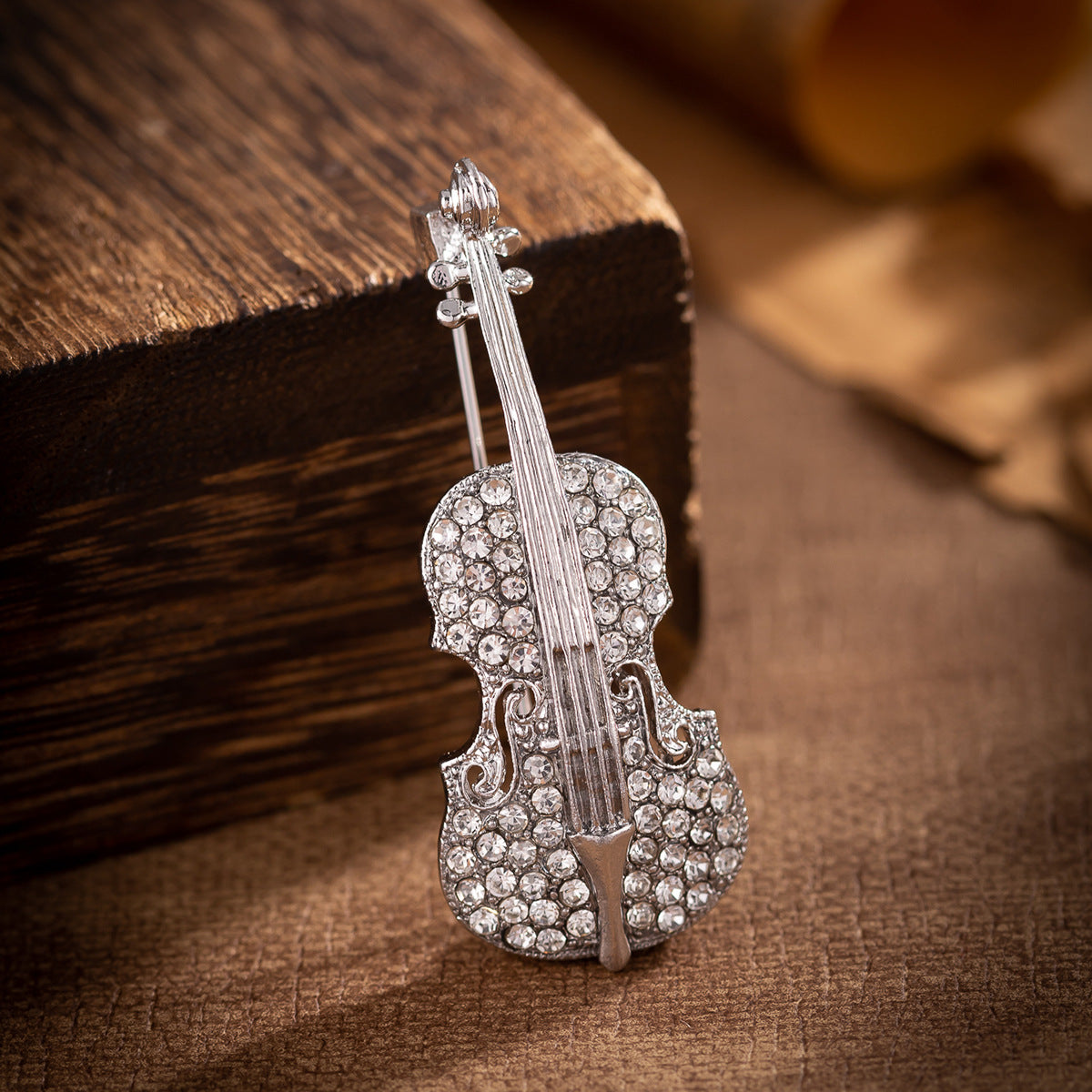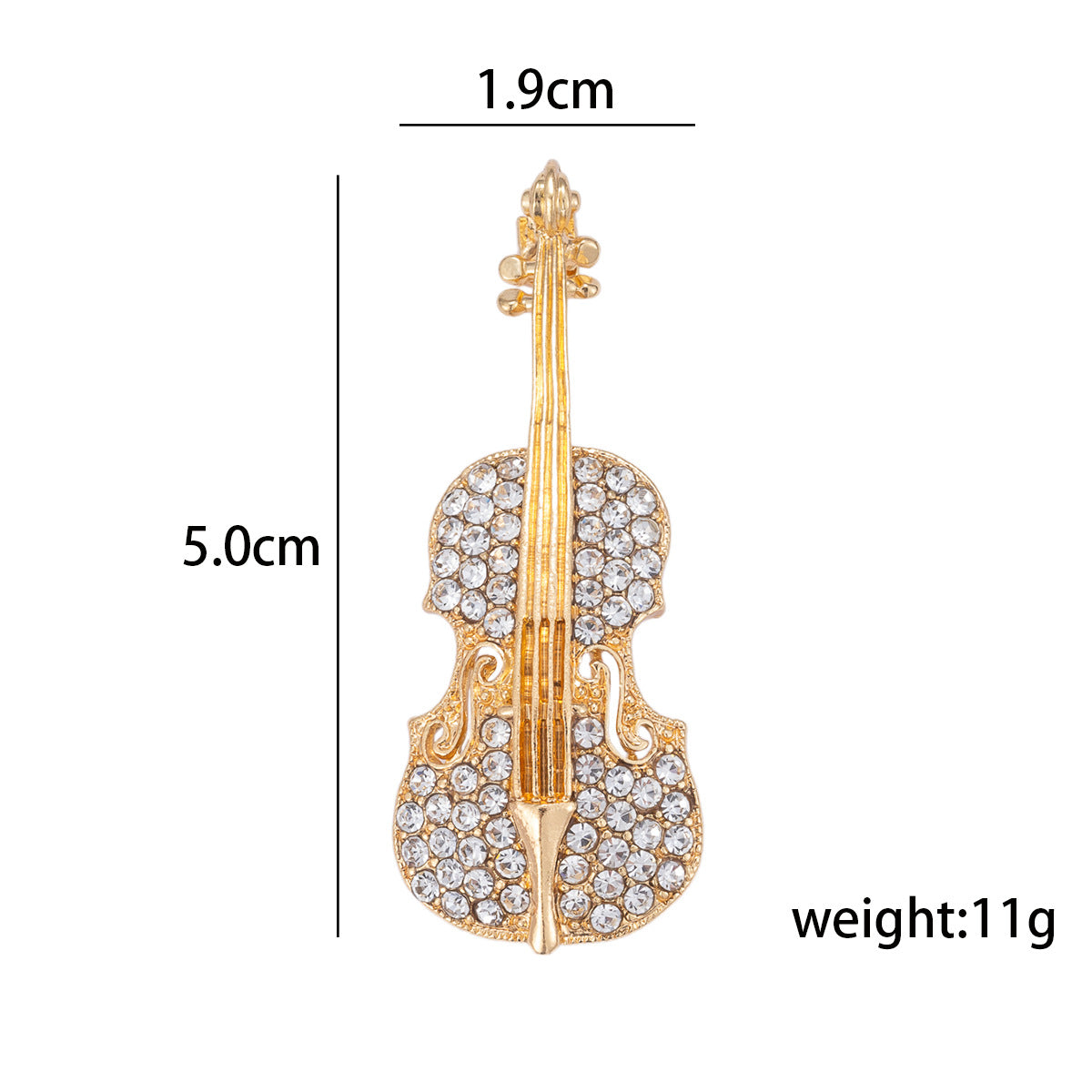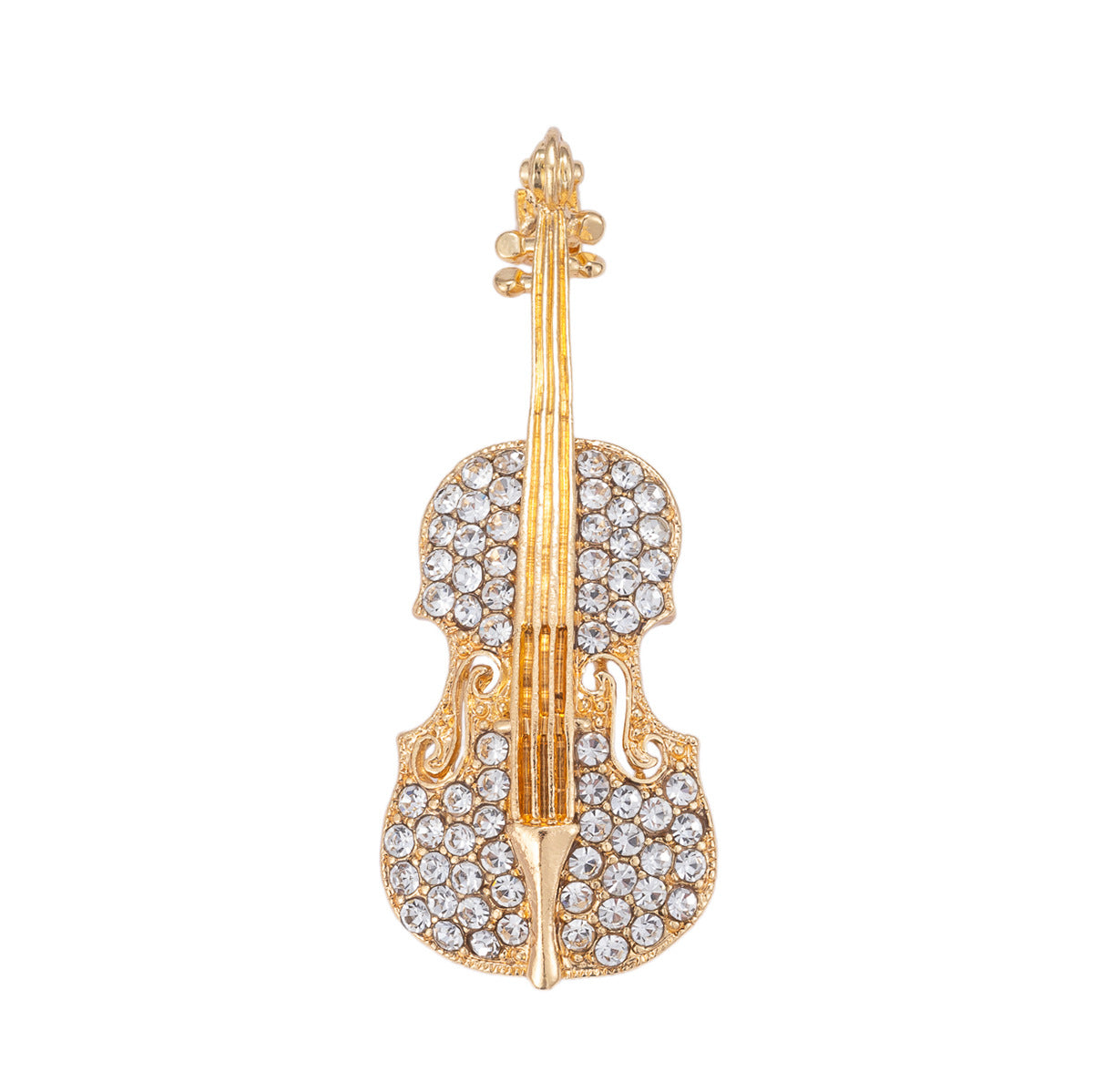 Ta broška v obliki glasbenega inštrumenta kitare, okrašena z diamanti, je osupljiv dodatek, ki zagotovo pritegne pogled. Okrašena s sijočimi diamanti, prinaša pridih razkošja in elegance vsakemu outfitu.