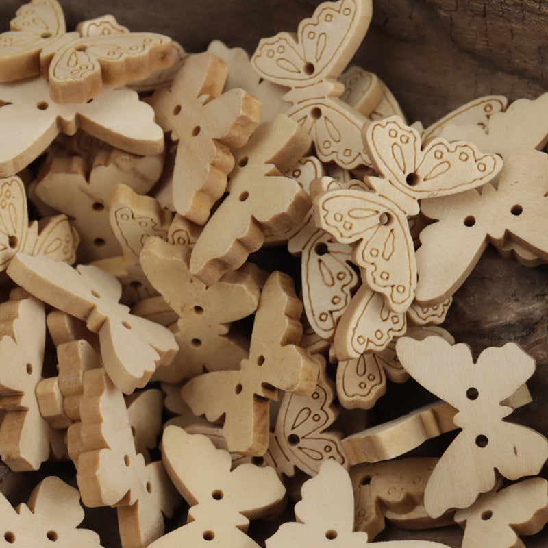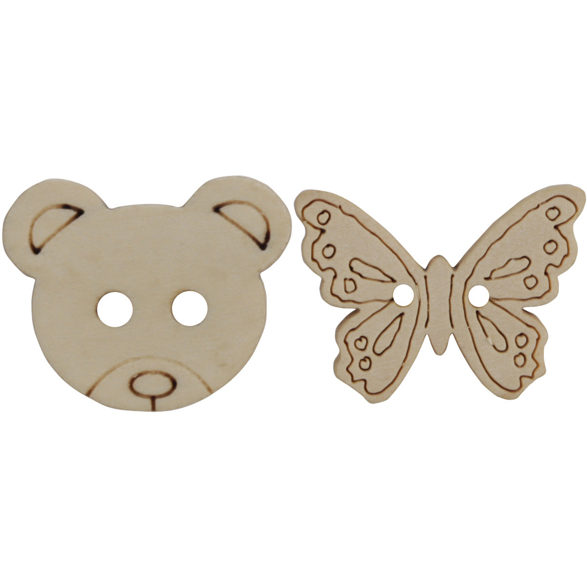 Naravni leseni gumbi medved/metulj z dvema luknjama v barvi hloda 50 kosov