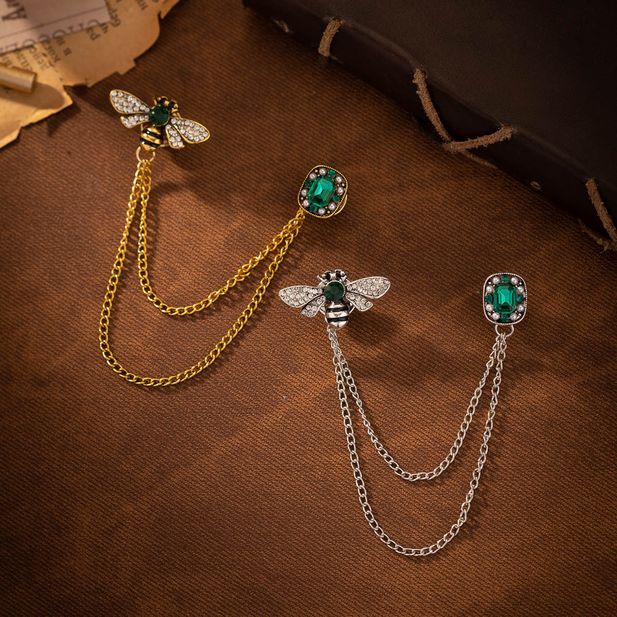 Idealna za dodajanje pridih glamurja obleki ali puloverju, je lahko izrazit kos za formalne priložnosti ali edinstven poudarek za vsakodnevno nošenje. Kombinacija čebeljega motiva, diamantov in smaragda ustvarja očarljiv in brezčasen dodatek.