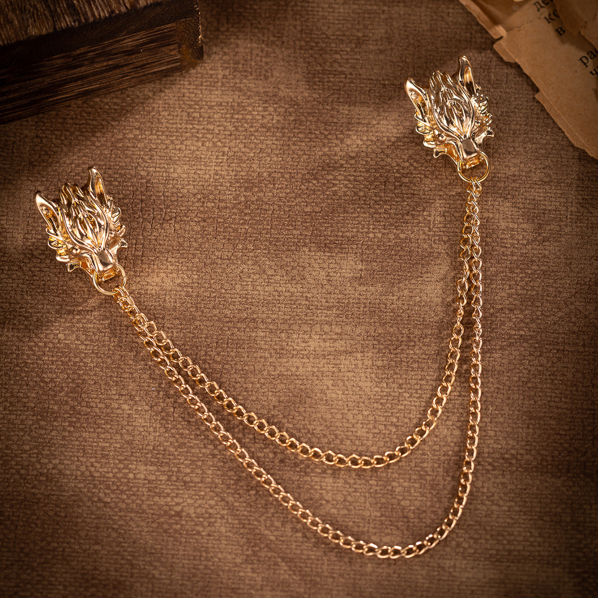 Ta broška z verižico in volčjo glavo je izstopajoč dodatek za moške. S svojim vintage in ustvarjalnim dizajnom prinaša kanček drznosti in individualnosti vsaki obleki.