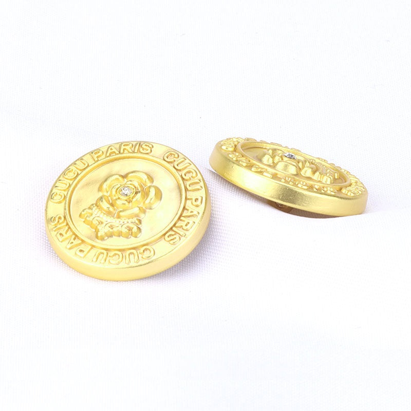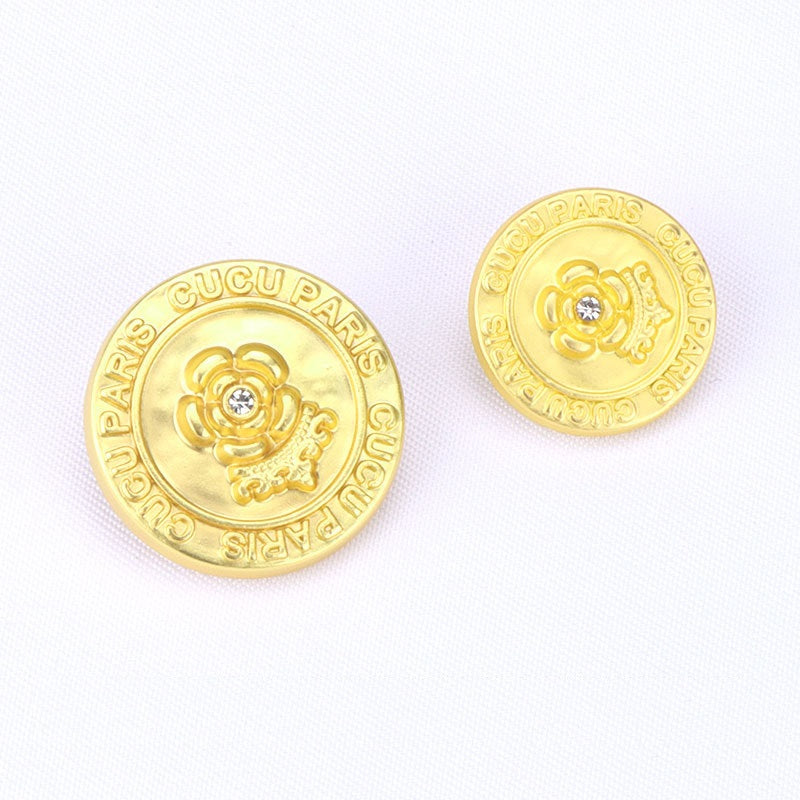 18/23mm CUCU PARIS okrogli matirani zlati kovinski gumbi z okrasnimi kristali in zankami, 12 kosov