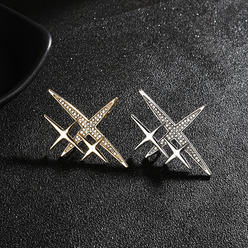 Zlat in srebrn broška v obliki križa z zvezdnim vzorcem - idealna za okrasitev suknjiča 4 kosa