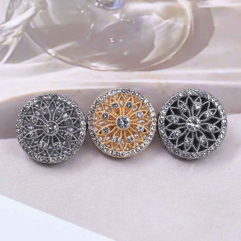 18/23mm Gumb iz kovine v barvi pištole/ zlata/ srebrna z okrasnimi kristali - Luksuzni kovinski gumbi za plašče, blazerje in ženske zgornje dele (10 kosov)