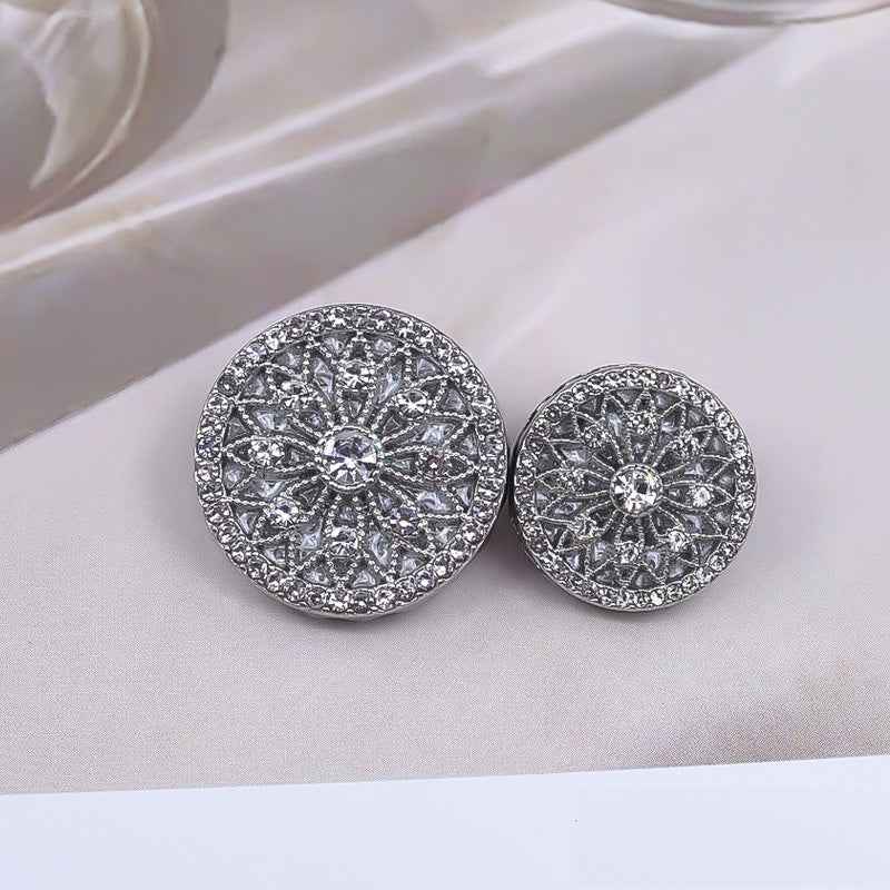 Izdelani za zahtevne modne oblikovalce in ljubitelje DIY, ti izvrstni kovinski gumbi z nogico velikosti 18mm in 23mm združujejo sofisticirane zaključke v barvi pištole, zlata in srebra z bleščečimi okrasnimi kristali. Popolni za dodajanje pridih luksuza ženskih plaščev, krojenih blazerjev in formalnih zgornjih delov, ti gumbi združujejo brezčasno eleganco s sodobnim slogom.