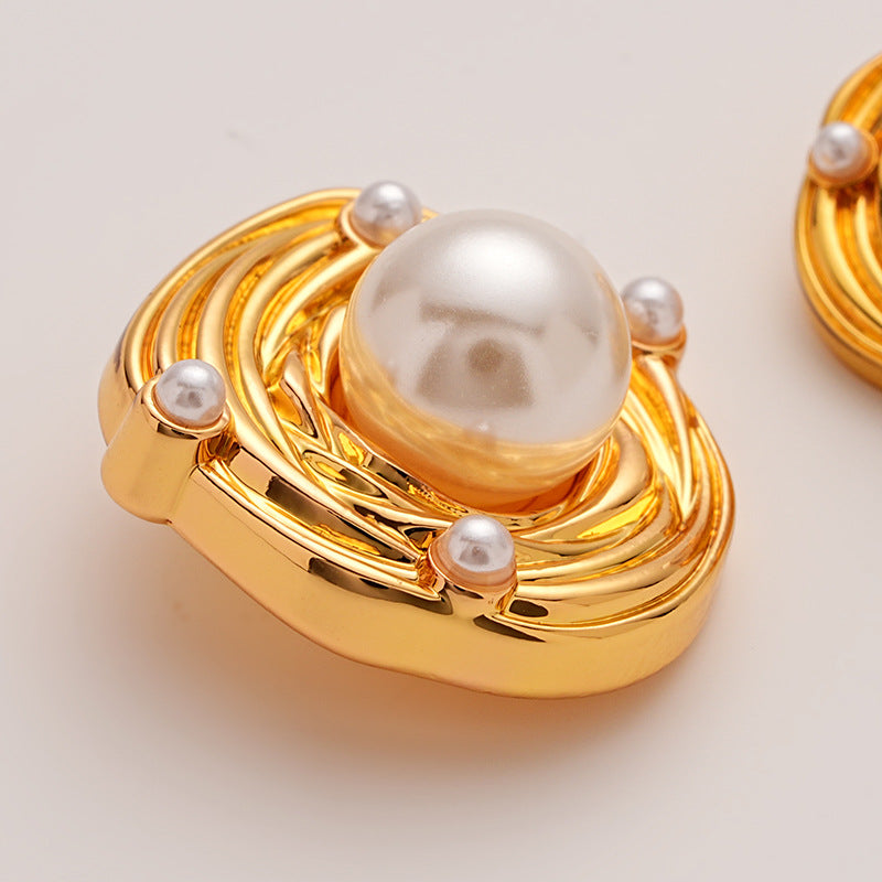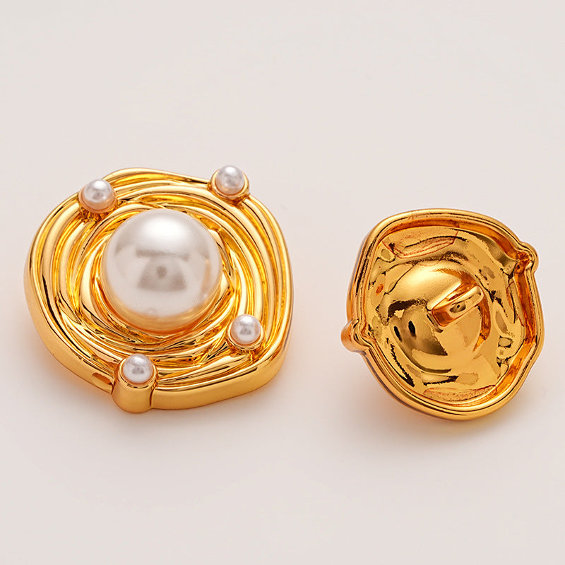 Nepravilni gumb iz zlatega kovinskega materiala z velikimi in majhnimi biseri, popoln za vintage qipao z občutkom prestiža, 6 kosov
