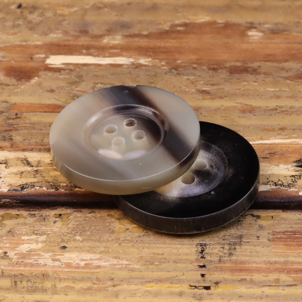 Off-White in bež-črni široki rumeni gumbi iz govejega roga 2 kosa