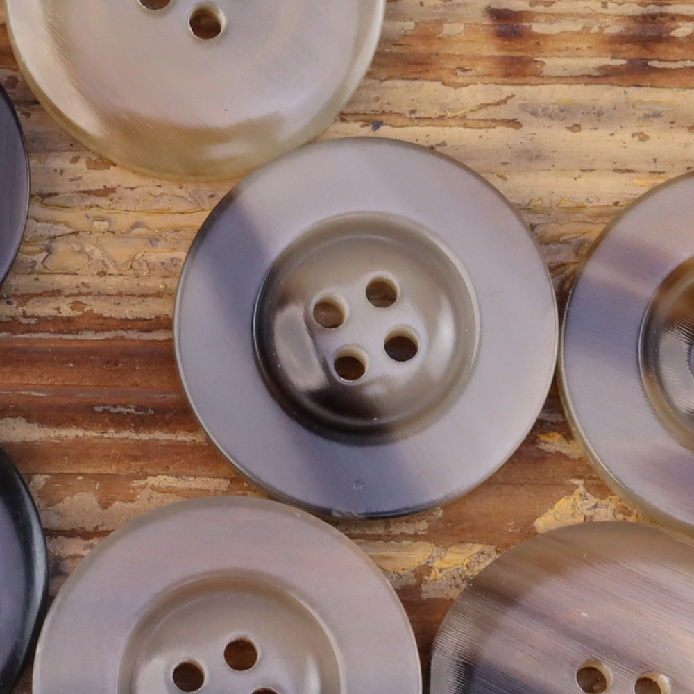 Ti gumbi iz rumenega govejega roga z širokimi robovi v barvah slonovine in bež-črne so edinstven in stilski dodatek za katerokoli oblačilo ali ustvarjalni projekt. Izdelani iz pravega rumenega govejega roga, nudijo naravno lepoto in vzdržljivost, ki je neprekosljiva. Široki robovi jim dajejo pogumen in prepoznaven videz, medtem ko kombinacija barv slonovine in bež-črne doda pridih elegance in prefinjenosti. Ti gumbi so popolni za dodajanje rustikalnega šarma jopičem, plaščem, bluzam in še več. Naj bodo zaključni dotik vaše naslednje kreacije.