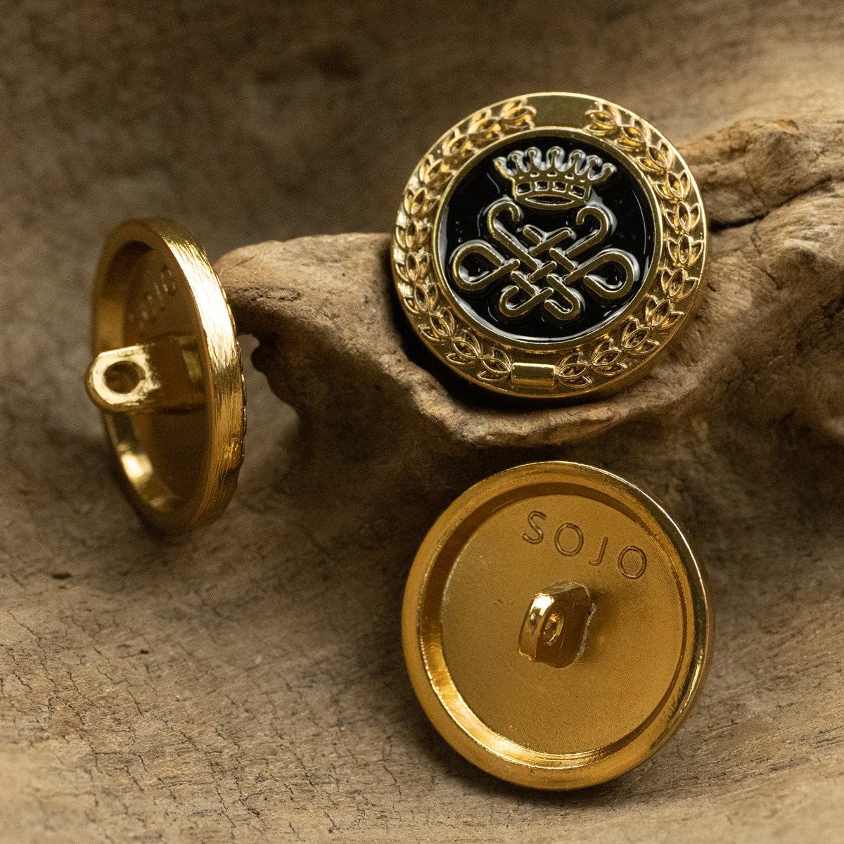 Ta gumb v palačnem retro slogu z motivom čajne zlate pšenice in krono ter z zatičem je pravo mojstrovino. Zapleten dizajn združuje eleganco krone z rustikalnim čarom pšenice, kar ustvarja edinstven in razkošen videz. Čajna zlata obdelava doda pridih topline in prefinjenosti. Kovinska konstrukcija zagotavlja vzdržljivost in dolgo obstojno lepoto. Zatič mu daje dodaten čar in omogoča enostavno pritrditev na oblačila. Popoln za dodajanje kraljevskega pridih na obleke, bluze ali jakne, ta gumb je nujen za vse, ki imajo radi vintage in elegantne stile.