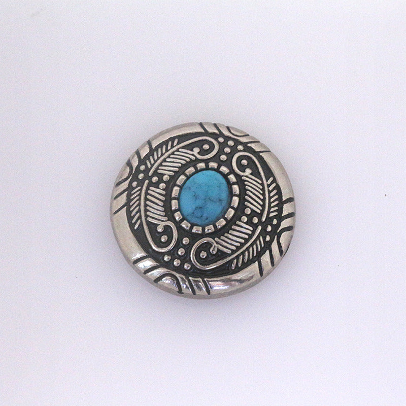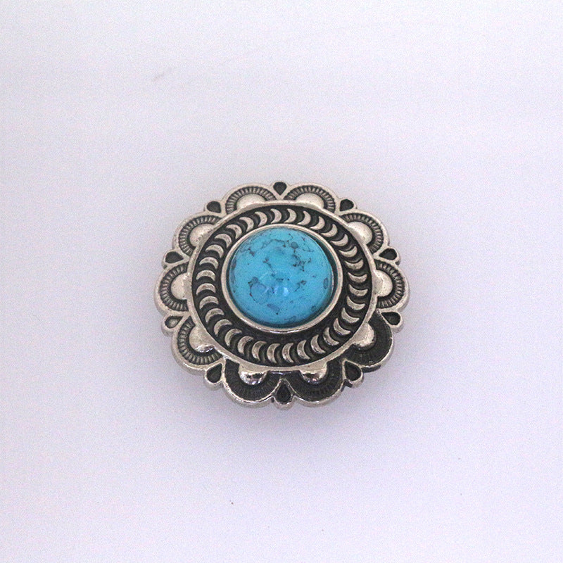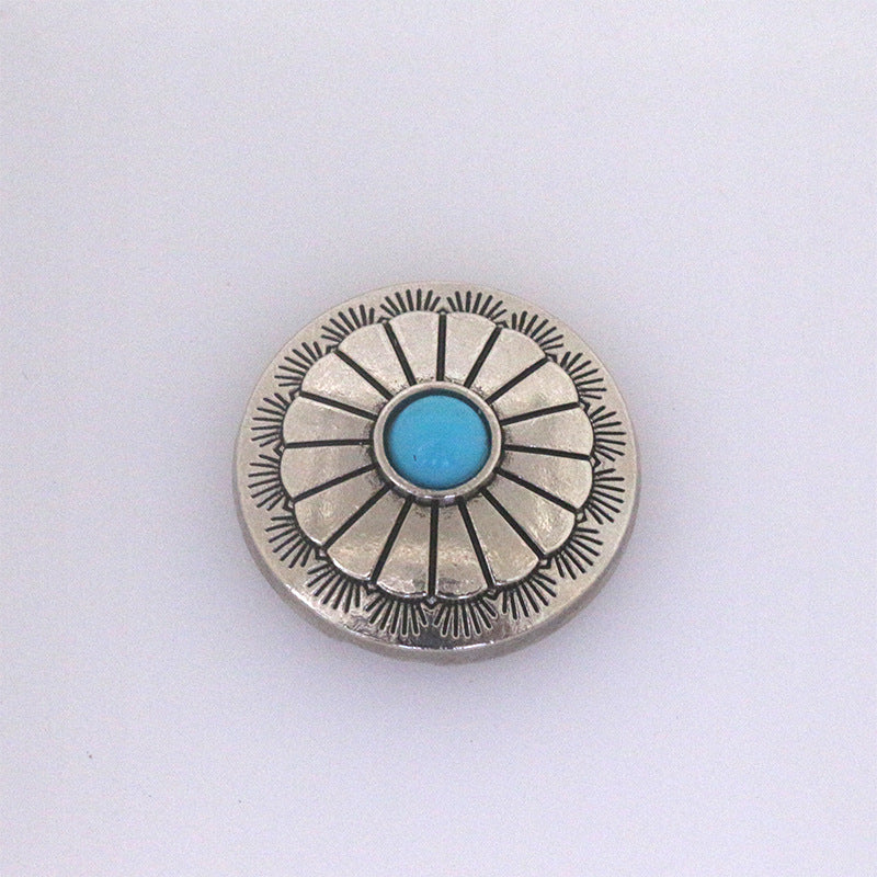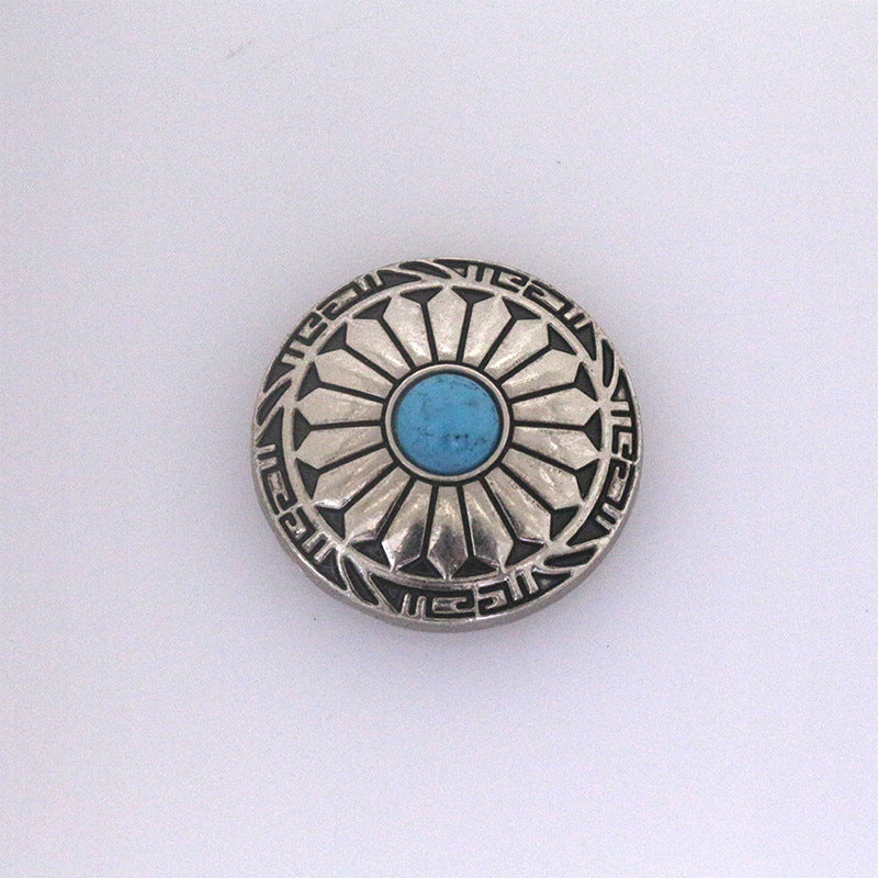 Ti izvrstni kovinski gumbi imajo osupljiv dizajn krizanteme z vstavljenim turkizom, ki dodaja pridih elegance in vintage šarma vsakemu dodatku ali oblačilu. Izdelani iz visokokakovostne zlitine cinka, so ti gumbi trpežni, brez niklja in svinca, kar zagotavlja varnost in dolgo življenjsko dobo. Na voljo v priljubljenih velikostih 15mm in 18mm, so popolni za okrasitev pasov, torb, jaken in drugih modnih kosov. Zapleten vzorec cvetja in živahna modra turkizna vstavka jih naredi izstopajočo izbiro za zahodni slog ali tradicionalno modo. Ne glede na to, ali jih uporabljate za DIY projekte ali kot stilsko nadgradnjo vaše garderobe, ti gumbi ponujajo vsestransko in privlačno dekorativno rešitev.