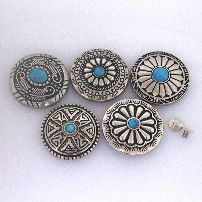 Turkizni kovinski gumbi za pasove, torbe, oblačila 50 kosov (10 stilov)