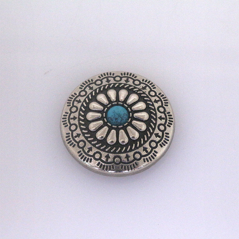 Kovinski gumbi s krizantemo in turkizno vstavko za pasove, torbe in oblačila, 50 kosov (10 stilov)