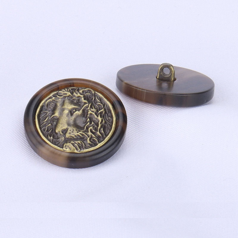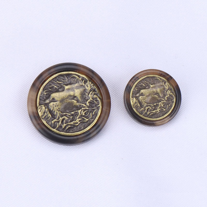 Ti gumbi velikosti 15 - 25 mm so izjemna izbira za zgornja oblačila. Edinstvena zasnova z levjo glavo prinaša močan vintage čar, zaradi česar izstopajo. Združevanje kovine in smole doseže popolno ravnovesje med vzdržljivostjo in estetiko. Gumbi so primerni tako za moška kot ženska obleka, plašče in vetrovke. Kovinski del doda trden in sijoč pridih, medtem ko smolni del lahko prikaže bogate podrobnosti vzorca levje glave. Ne služijo le kot zapirala, ampak tudi kot dekorativni elementi, ki izboljšajo celoten slog oblačil. S temi gumbi bo vaše zgornje oblačilo dobilo plemenit in klasičen videz, ki izraža dostojanstvo in eleganco tako na formalnih kot neformalnih priložnostih.