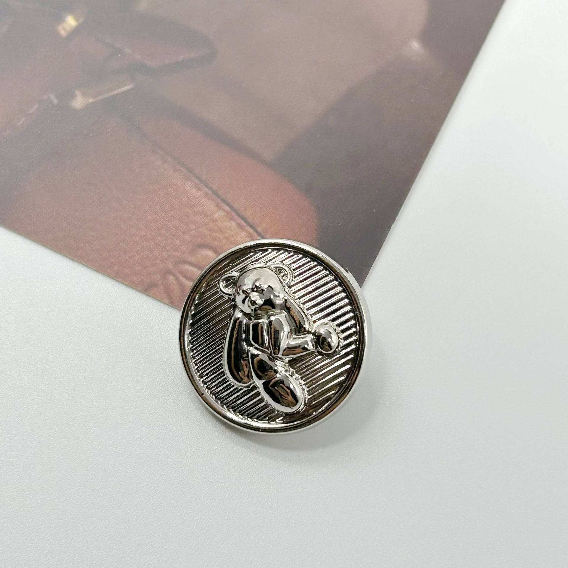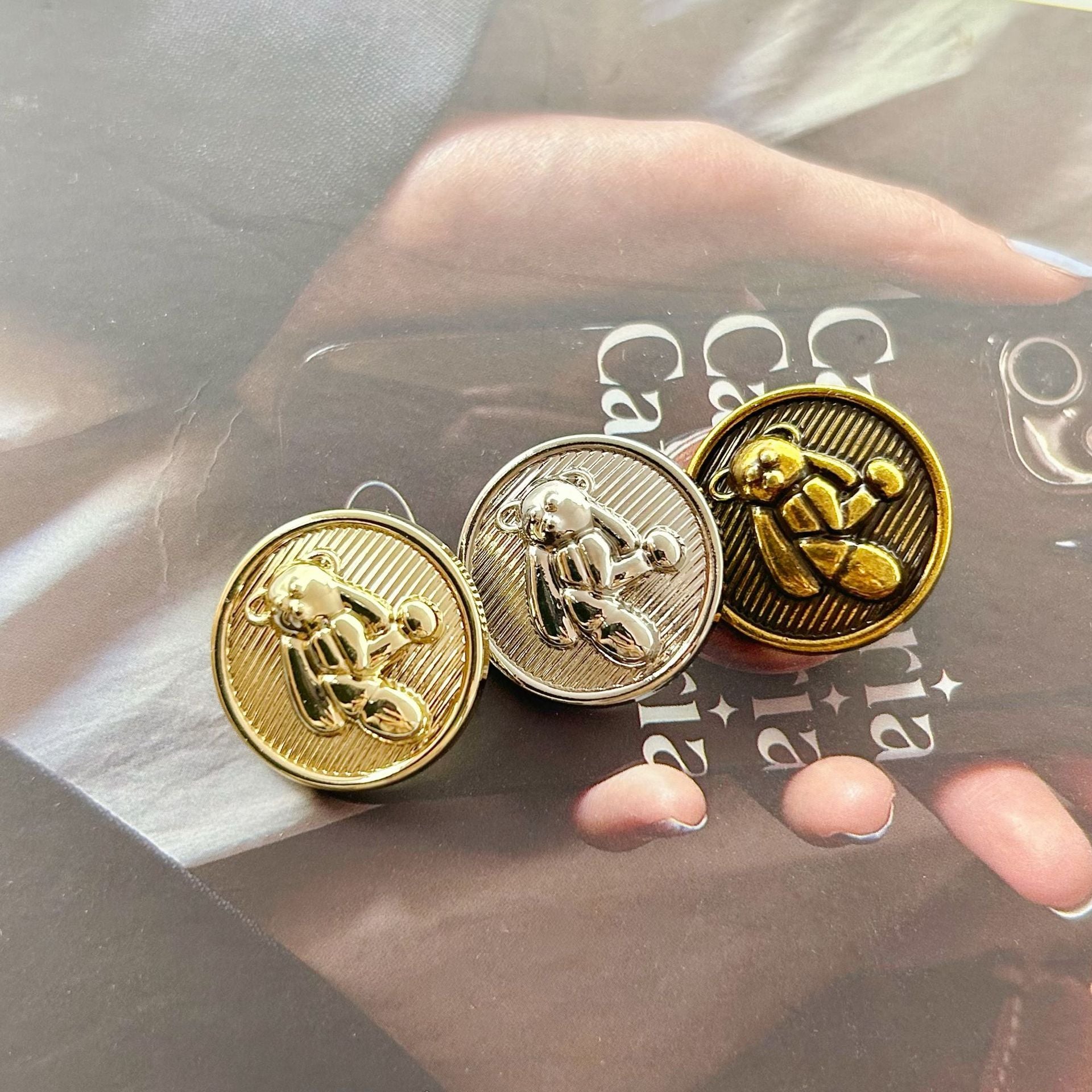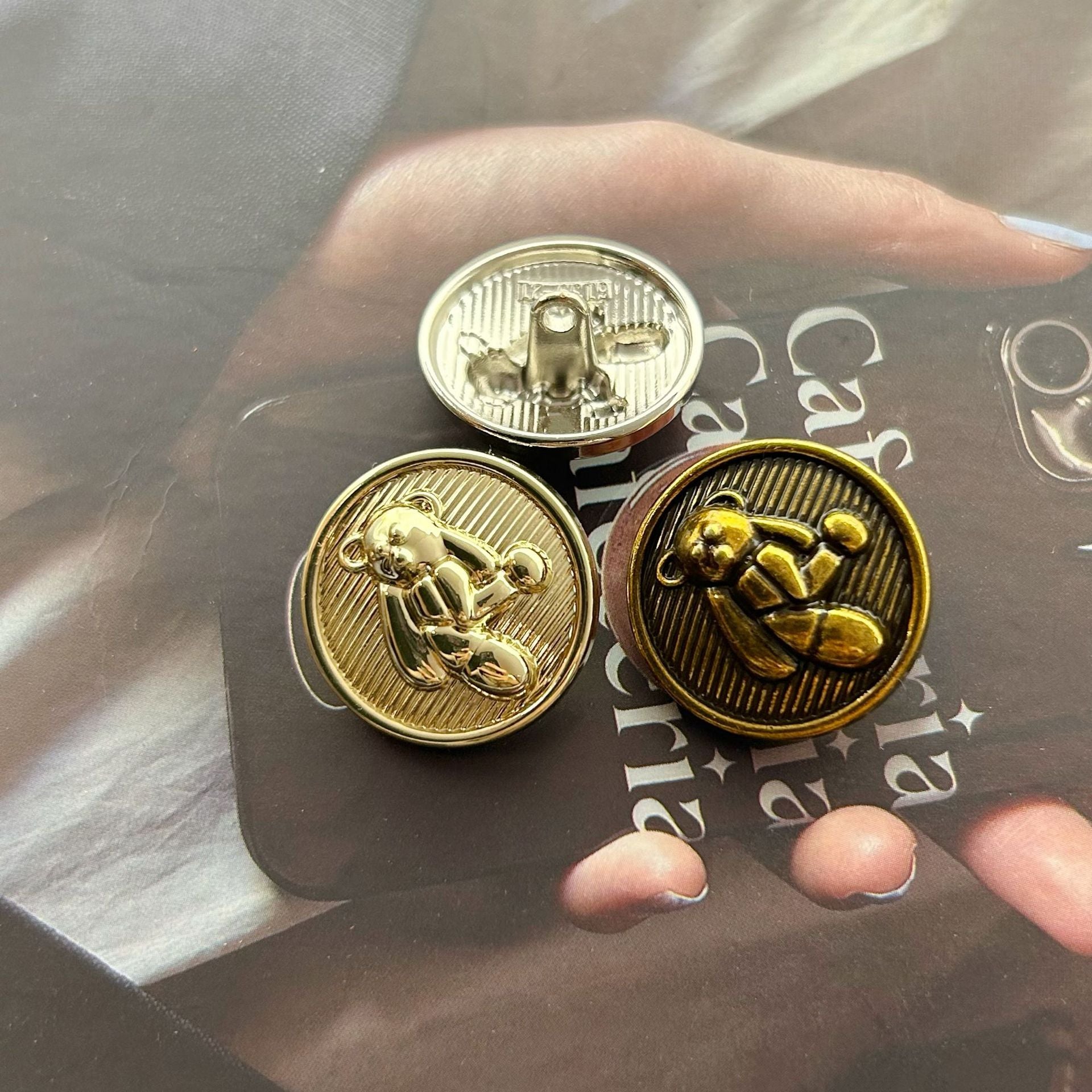Dessa 15 - 23 mm metallknappar är designade i form av söta 3D-nallar. De är perfekta för att lägga till en touch av charm och lekfullhet till varje plagg. Knapparna är tillverkade av högkvalitativ metall, vilket säkerställer hållbarhet och en glänsande finish. De fötter som är fästa gör dem lätta att sy på kläder som tröjor, jackor eller barnkläder. De kan förvandla ett vanligt plagg till ett unikt och iögonfallande modeuttalande. Oavsett om det är för en avslappnad eller mer uppklädd look, är dessa knappar ett utmärkt sätt att visa din kärlek till söta och trendiga accessoarer.