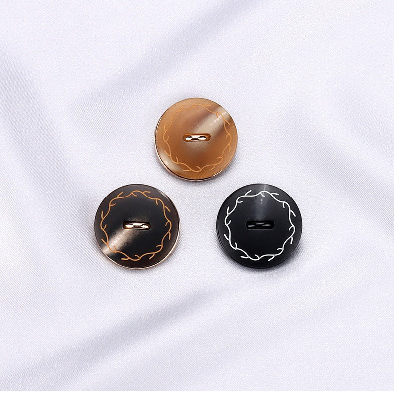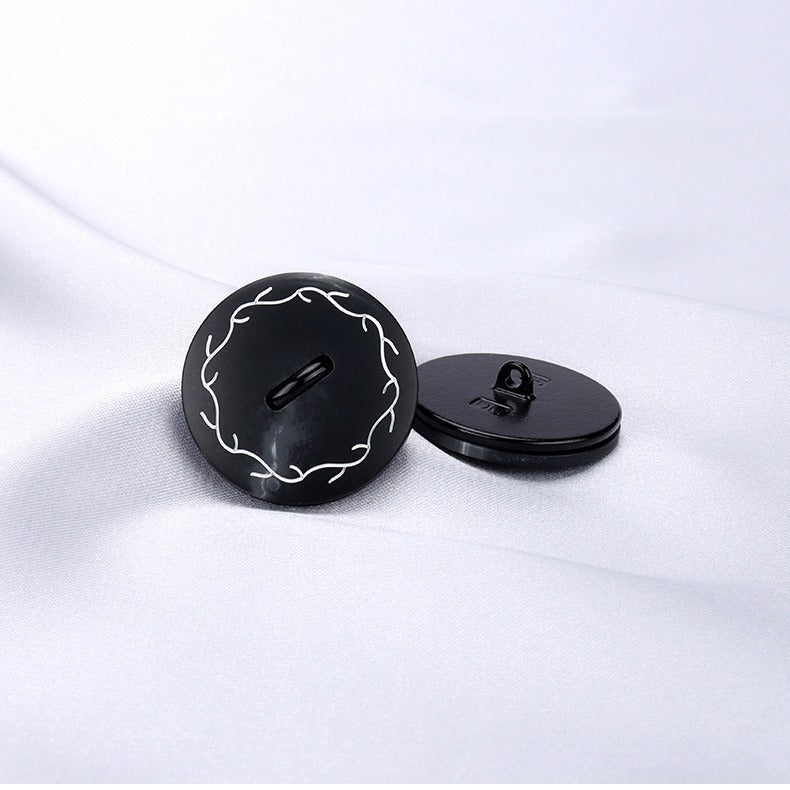 Dessa 18/23/25 mm knappar är ett utmärkt val för rockar. De är tillverkade av en kombination av högkvalitativ metall och harts, vilket säkerställer hållbarhet och en lyxig känsla. Den runda formen ger dem ett klassiskt utseende. Den tvåfärgade designen i svart, khaki och brunt gör dem verkligen unika. Den svarta tonen tillför en känsla av mystik och elegans, khakin ger en touch av diskret charm, och brunt erbjuder en känsla av värme och natur. Knapparna kommer med handtag, vilket gör dem lätta att sy fast på rocktyget. De är perfekta för dem som uppskattar fina detaljer och vill lägga till en touch av klass till sin ytterklädsel. Oavsett om det är en formell överrock eller en stilren casual rock, förbättrar dessa knappar den övergripande estetiken.
